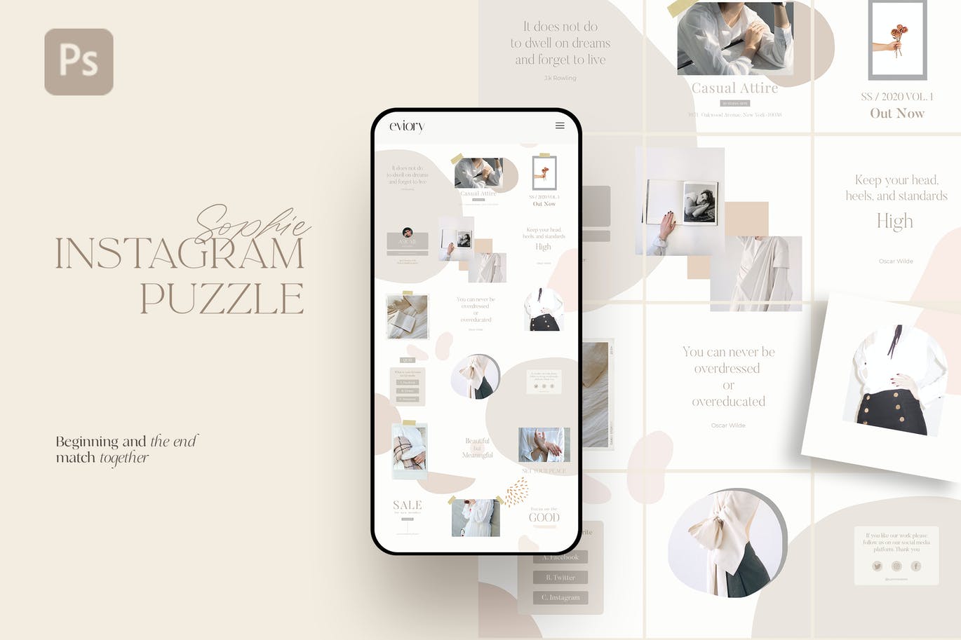 这次老不湿分享的是,时尚高端优雅Instagram社交媒体banner海报设计模板,拼图1200×1200 px组合为instagram拼图