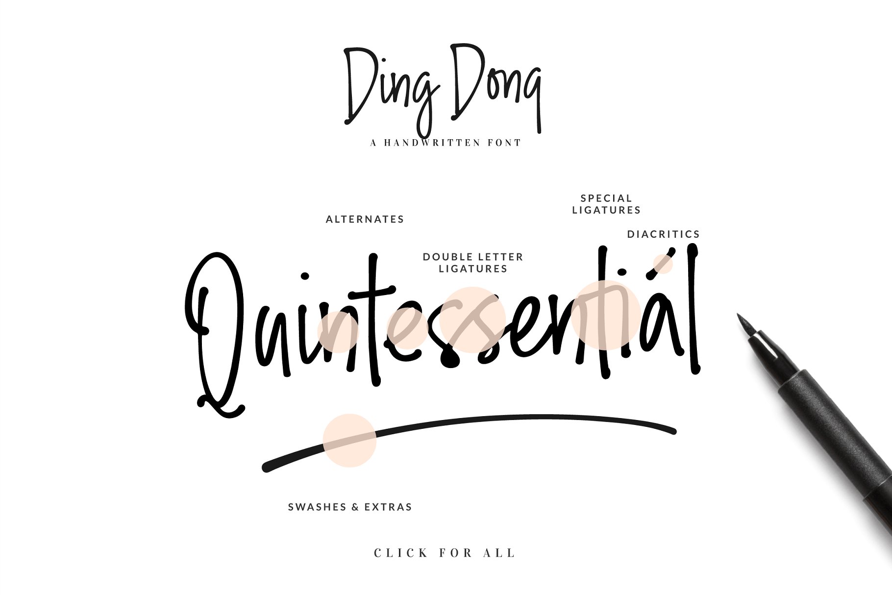 Ding Dong手绘字体 是一种新潮、现代的直手写字体。它独特的手写外观使它在所有的设计项目中都是完美的,无论是商标,签名,标签,包装设计,博客标题。使用 Ding Dong 一定会让你的文章脱颖而出。