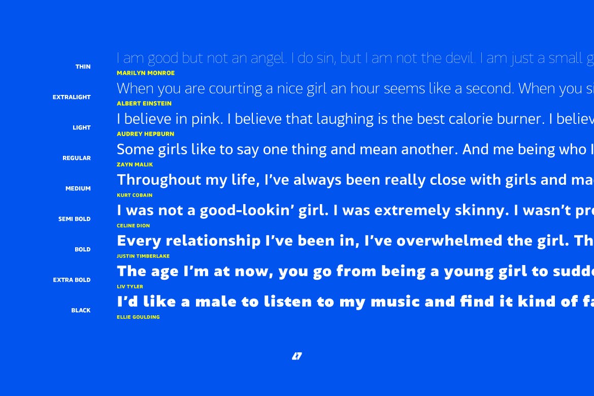 这次老不湿分享的是,时尚Maiden无衬线字体,是一款以人文主义无衬线字体为主的笔尖式笔尖,有点甜美的链接,包含从薄到黑的九种重量。旨在用作标题的正文。