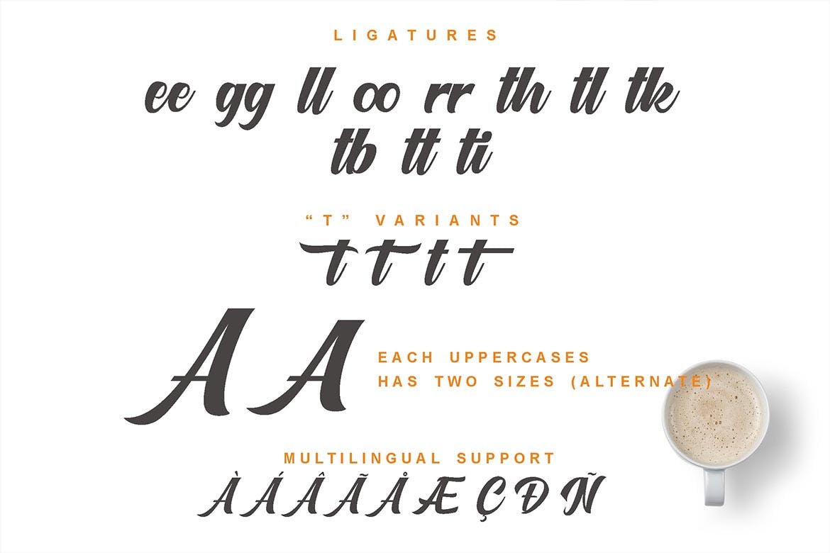 这次老不湿分享的是,优雅时尚的英文数字字体,现代手工制作的字体,动态,也有美丽的opentype功能。一次性脚本很容易用于你的工作; 品牌,标志设计,刻字,服装,海报等。一次性脚本包括: