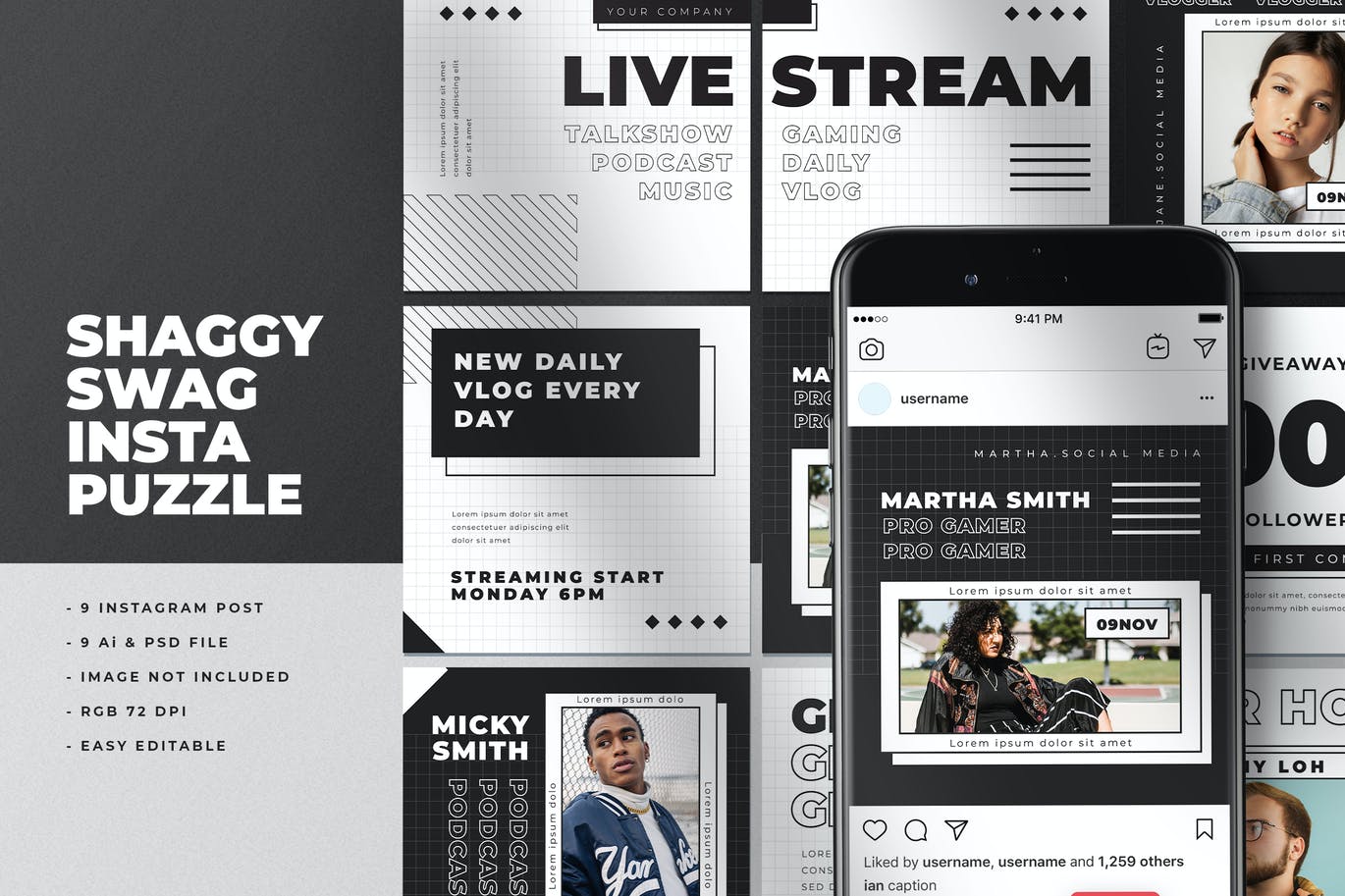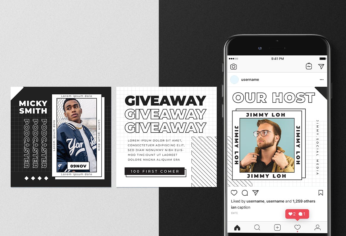 这次老不湿分享的是,时尚高端新孟菲斯风格的简约Instagram社交媒体banner海报设计模板-AI,PSD,完全可定制和可编辑的Ai& PSD模板+出血。