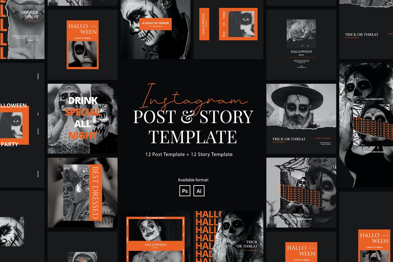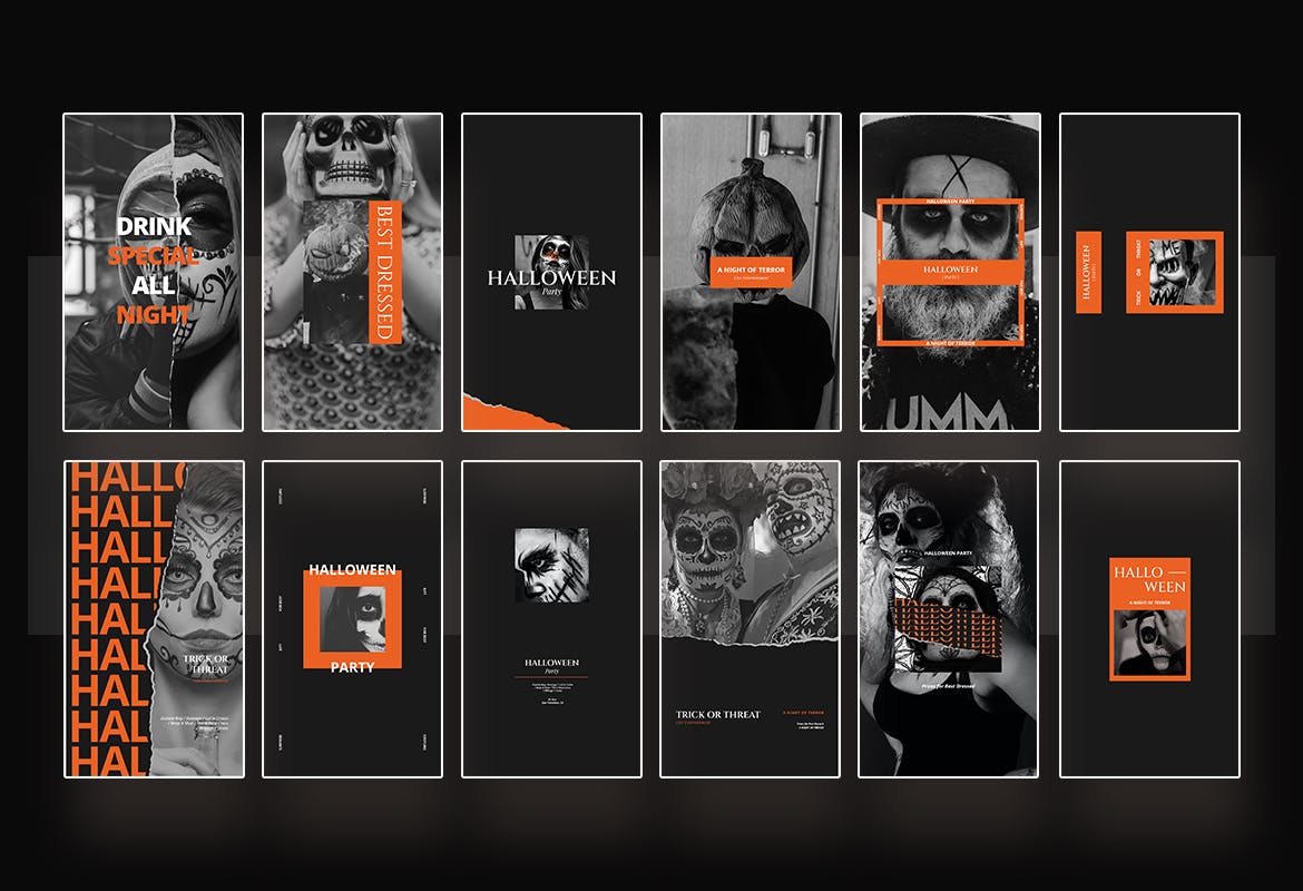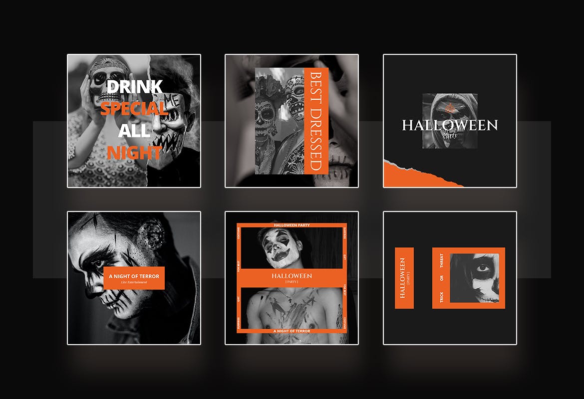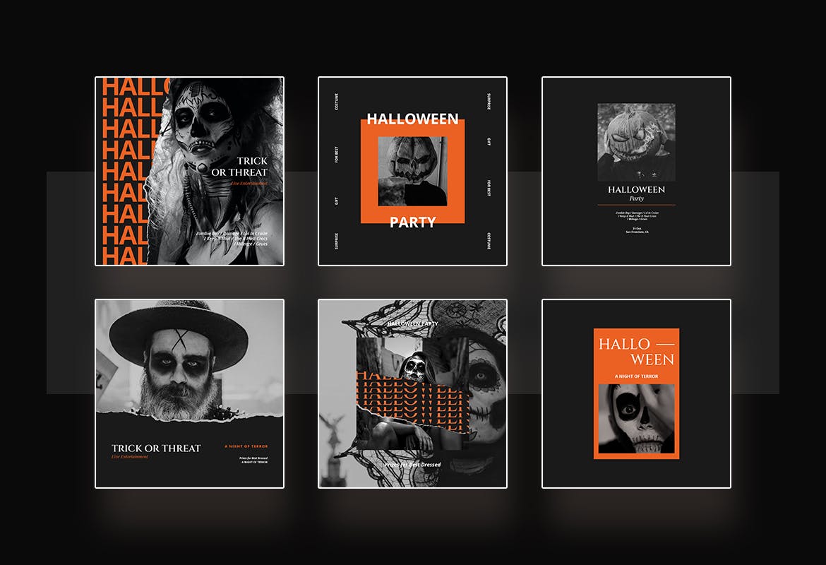 这次老不湿分享的是,高端震撼的万圣节派对party Instagram社交媒体banner海报设计模板集合-AI,PSD,该模板非常适合万圣节派对,万圣节活动,捣蛋,现场娱乐等。
