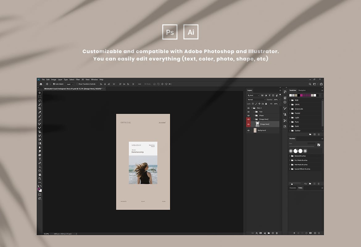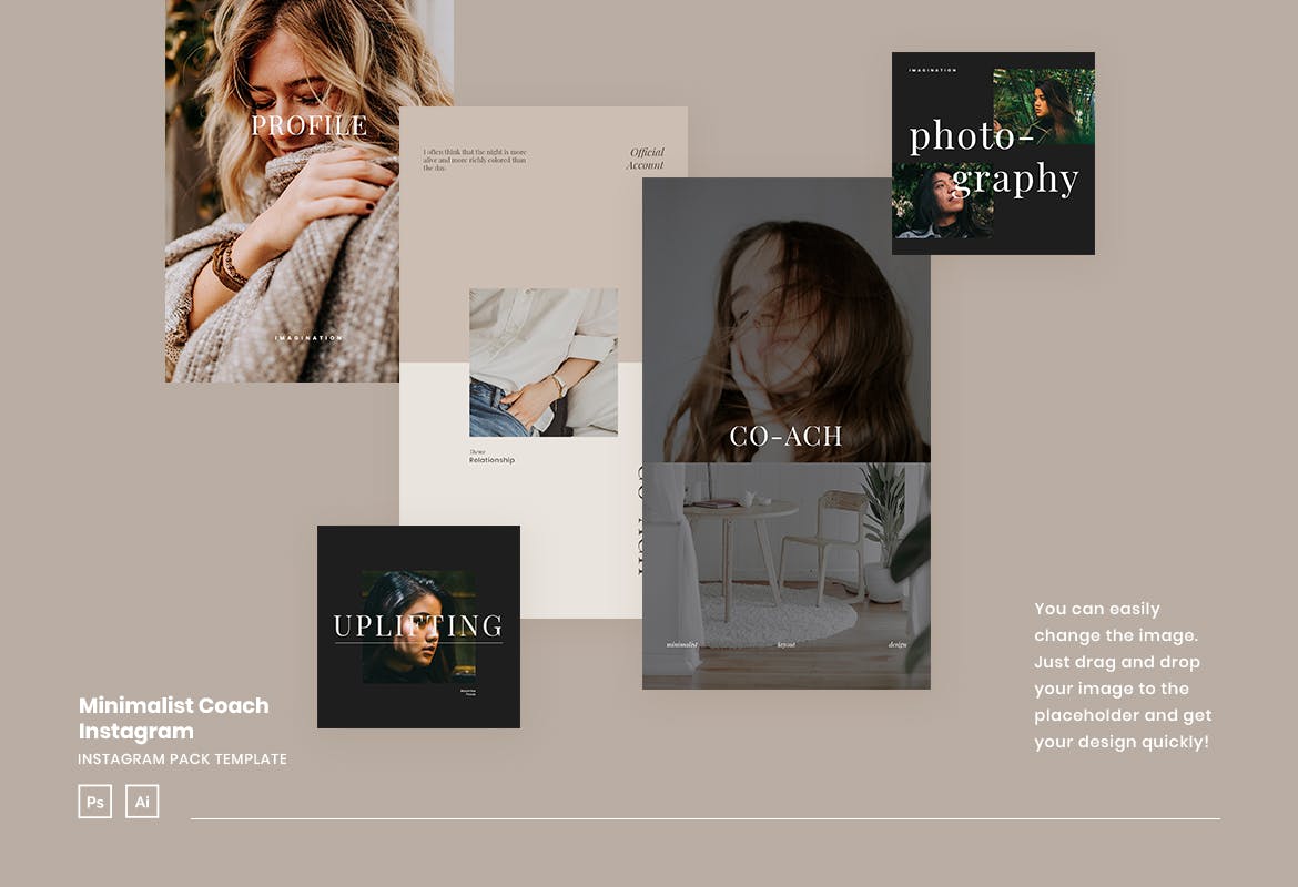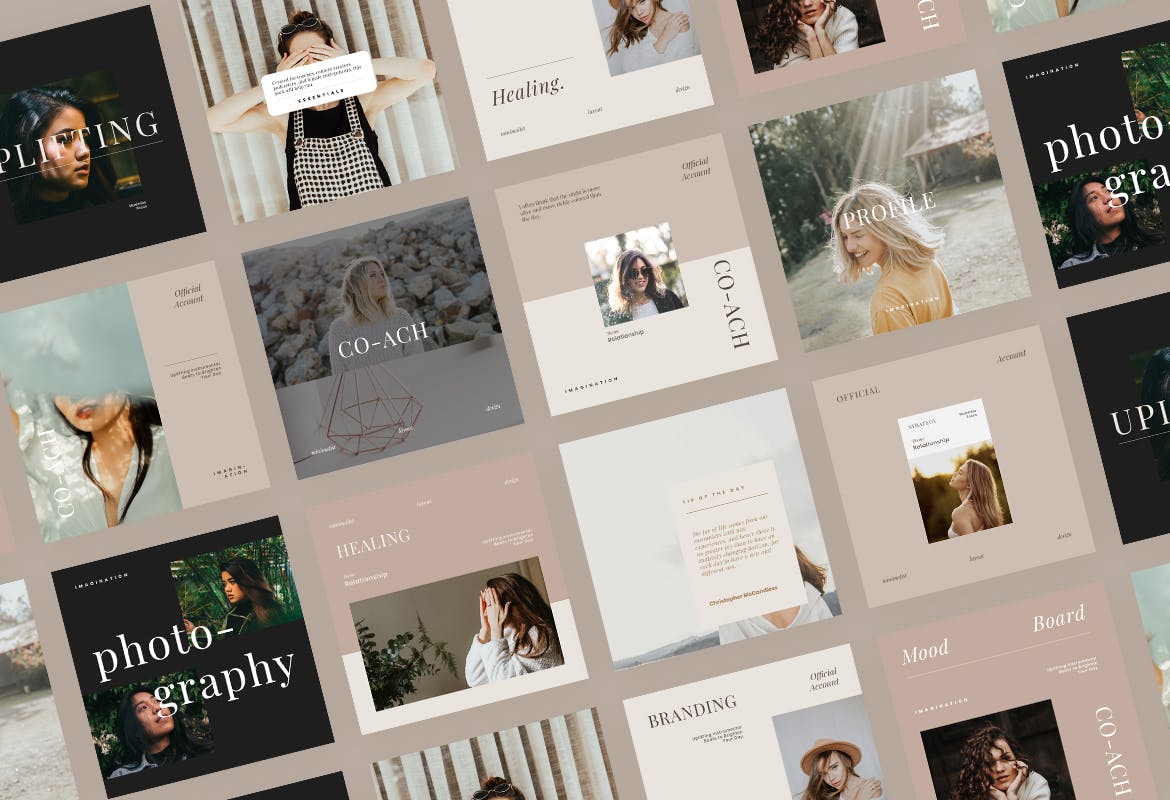 这次老不湿分享的是,极简主义的高端优雅简约清新时尚Instagram社交媒体banner海报设计模板集合,该模板包括12个独特且酷的Instagram帖子以及PSD和AI格式的Story模板。您可以使用Adobe Photoshop和Adobe Illustrator轻松地进行编辑和自定义。