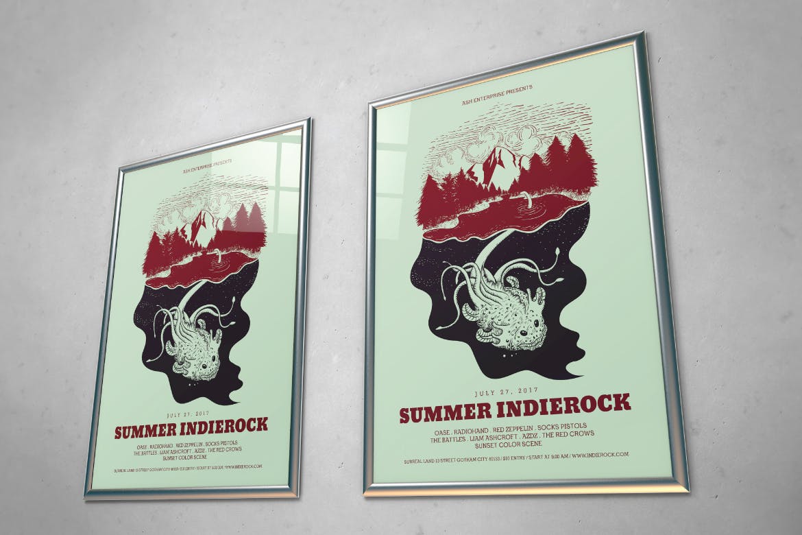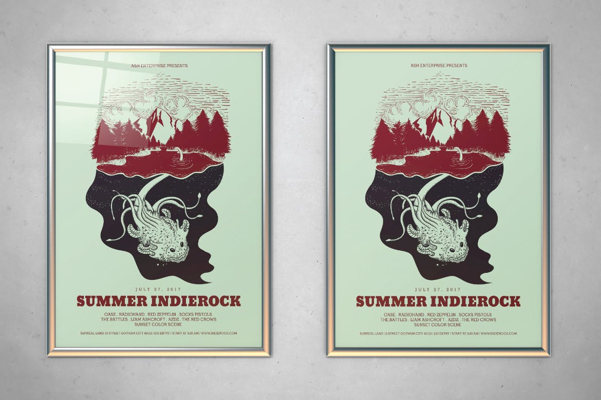 这次老不湿分享的是,个性时尚抽象夏天独立摇滚音乐节海报设计模板-AI,PSD,此矢量艺术插图传单旨在促进您的创意业务,例如音乐(独立摇滚/另类/地下音乐会),或其他创意领域,例如艺术和社区海报。