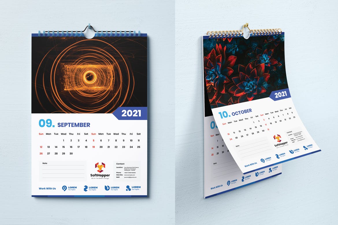 这次老不湿分享的是,2021年日历企业公司挂历设计模板-PSD,JPG,一键通过色板更改颜色,完全可定制,可编辑。CMYK色彩模式和可打印的文件。