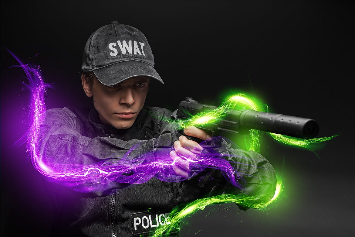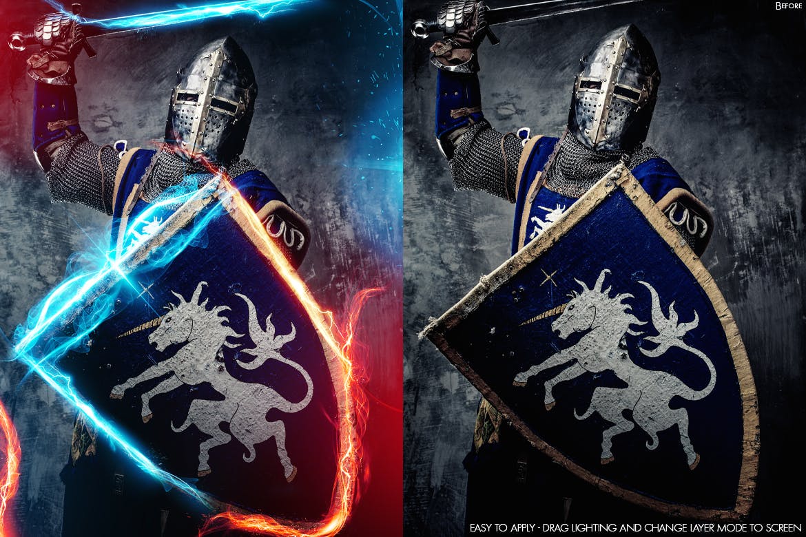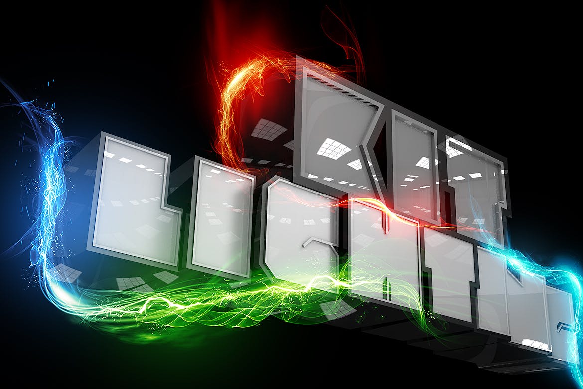 只需将灯光效果放到您的设计中,然后将图层更改为屏幕模式。
