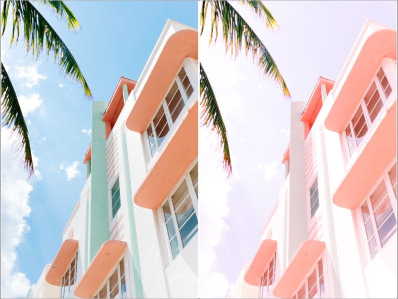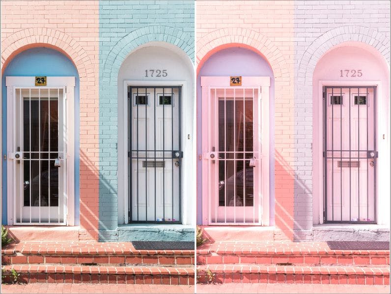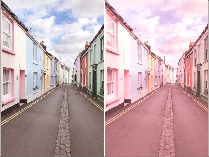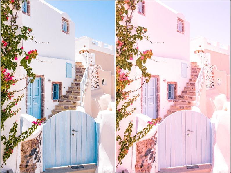 保持粉红色Lightroom预设。此预设使您的照片具有极简的粉红色外观。此预设使您的主要颜色为亮粉色,而照片的对比度较低。该预设适合喜欢拍摄可爱建筑物的人。