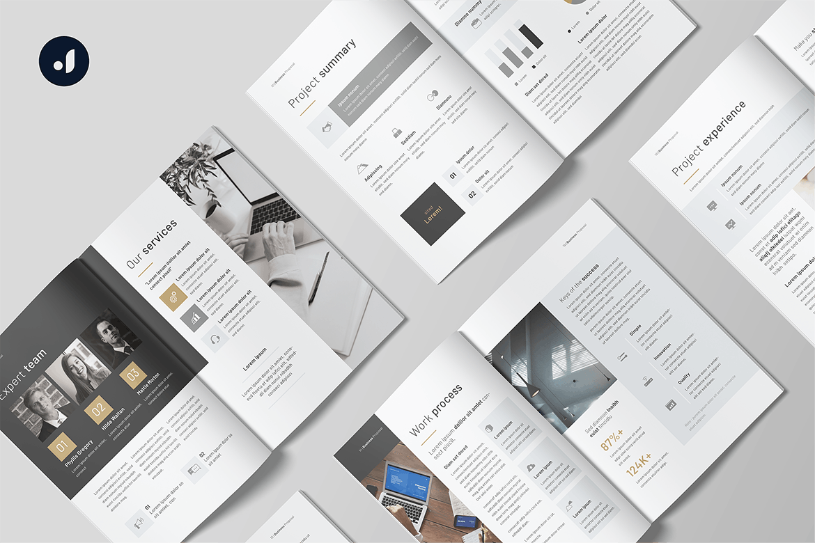 这次老不湿分享的是,简约时尚高端多用途的高品质商业商务计划书品牌手册画册宣传册杂志房地产楼书设计模板,商业提案 –高级高质量提案模板可用于各种类型的社论,例如杂志、提案、目录、投资组合出版物和电子书。并且提案的所有部分都可以轻松编辑和定制。