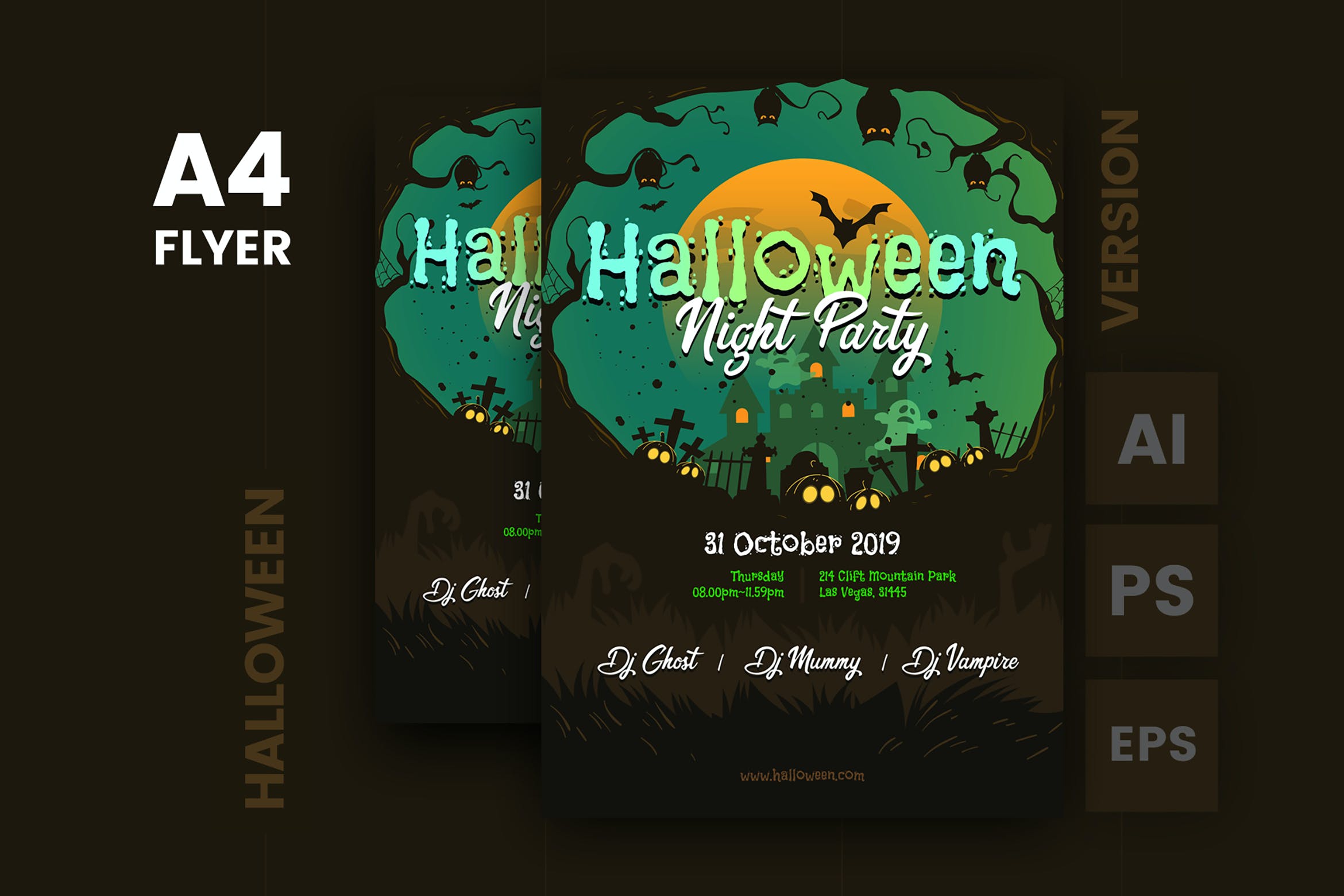 **万圣节传单模板。**此布局适用于任何项目目的。非常容易使用和定制。