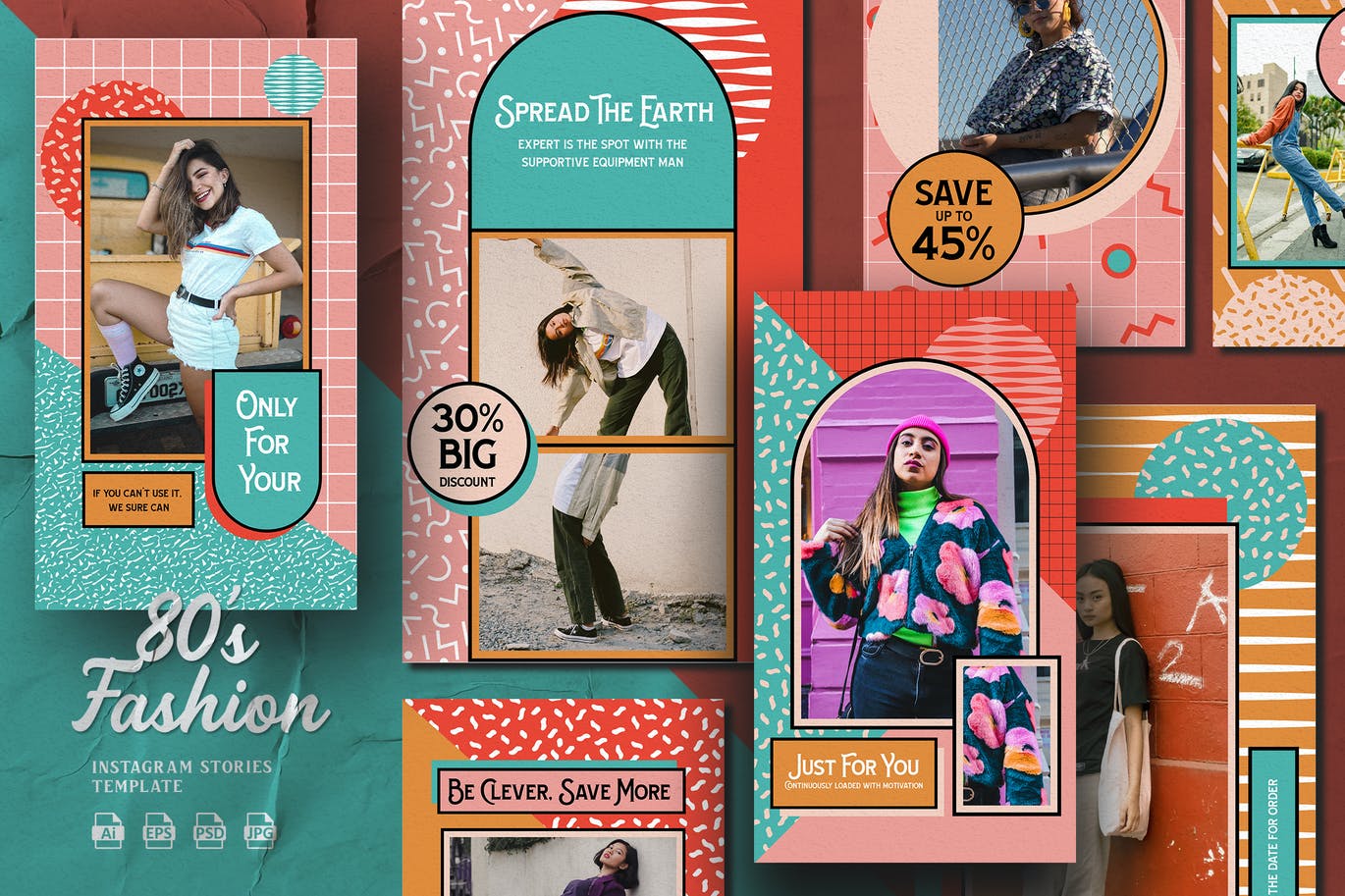 这次老不湿分享的是,80年代复古风Instagram社交媒体banner海报设计模板集合-AI,EPS,JPG,PSD,尺寸1080(W)x 1920(H)pxl
