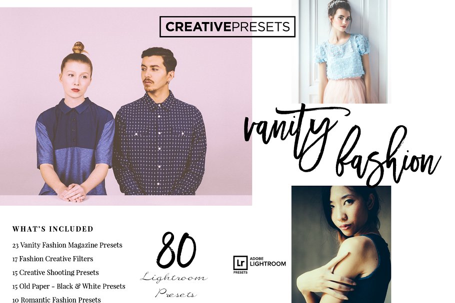 80 个特色专业 Lightroom 预设,为 时尚/编辑、美容和生活方式摄影师。用它们来为你的照片增添迷人的外观吧!