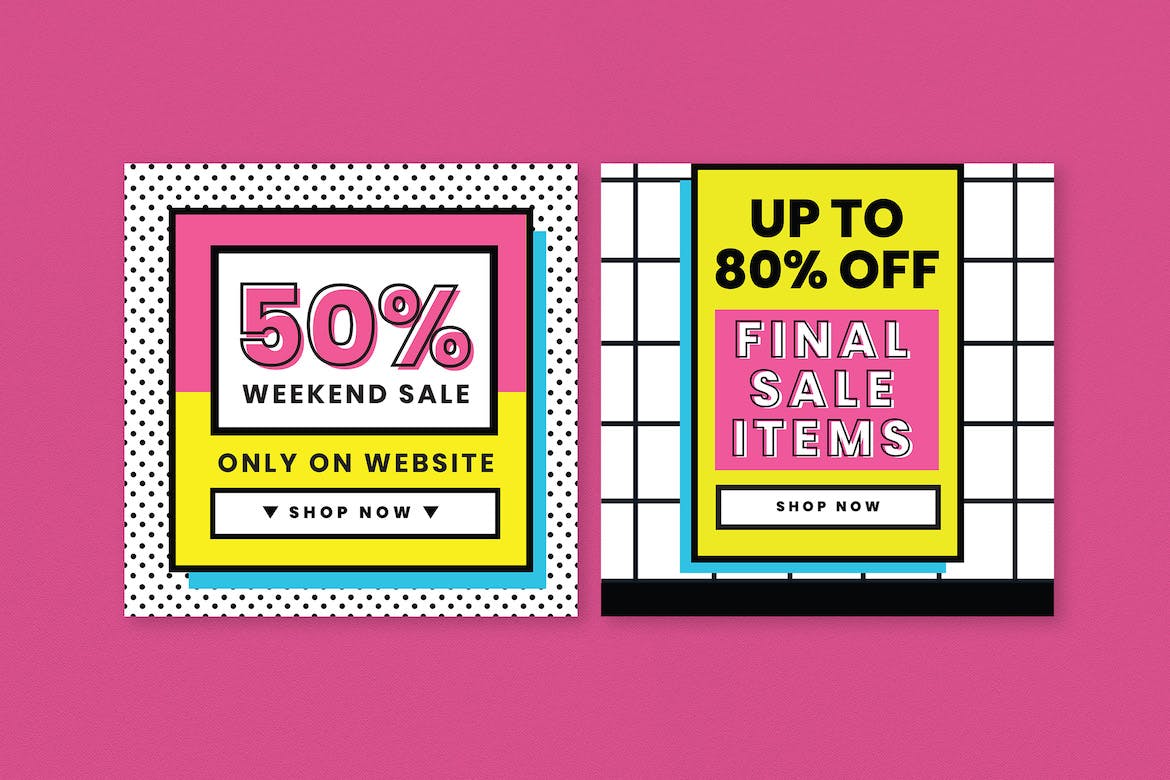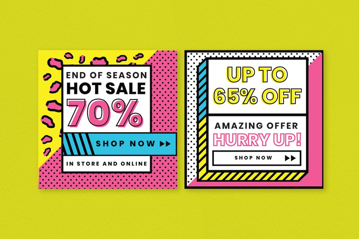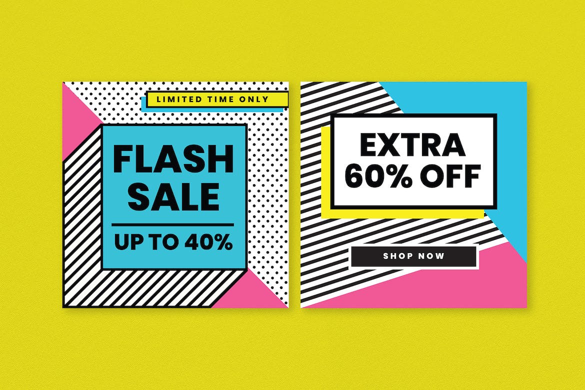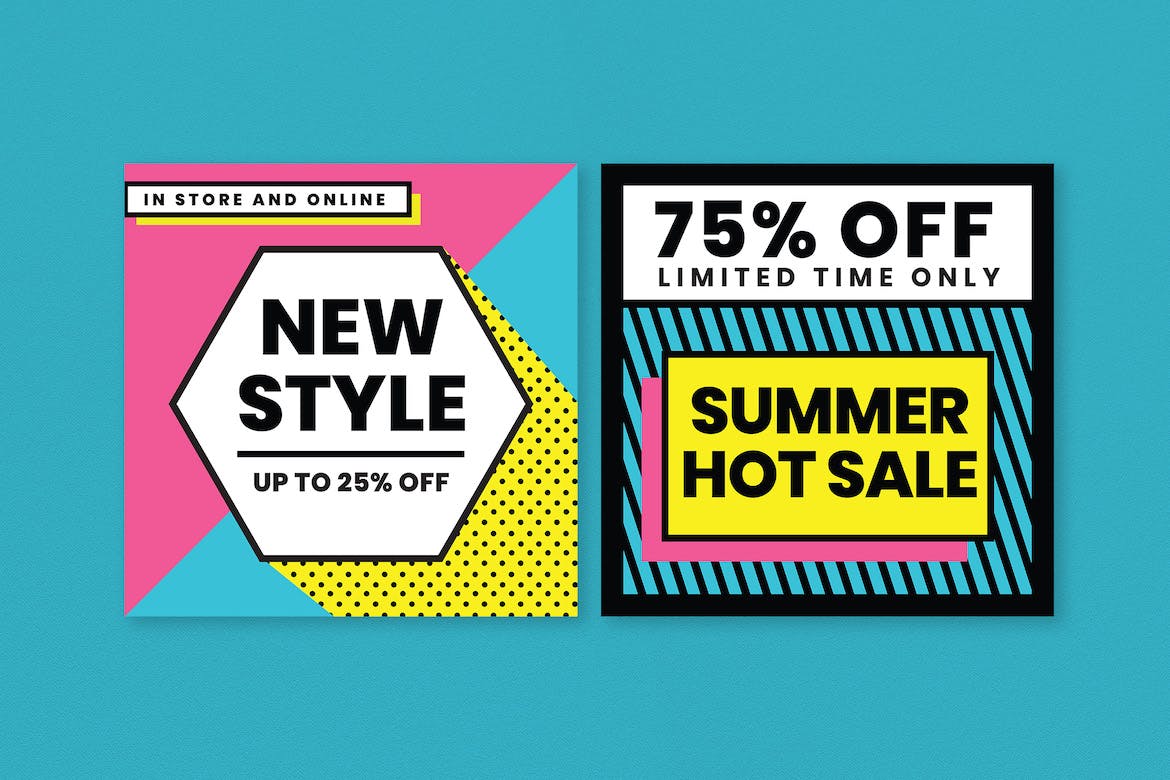 这次老不湿分享的是,时尚高端90年代复古孟菲斯风格banner海报设计模板集合-AI,PSD,完全可定制和可编辑的Ai&‌ PSD模板。文本,图像和图形位于单独的层上。