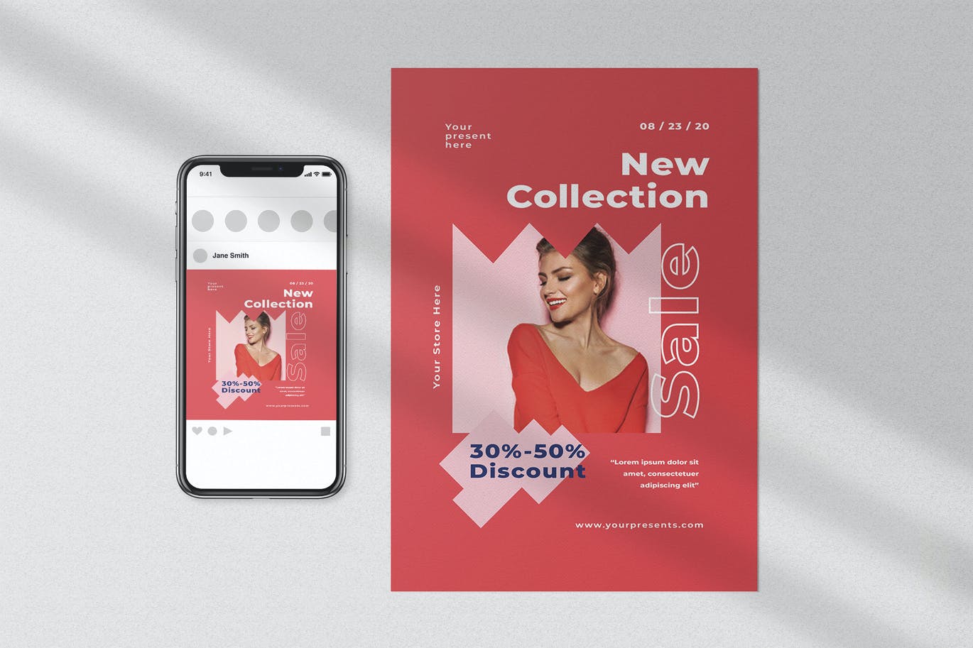 这次老不湿分享的是,简约时尚高端促销海报设计模板-PSD,AI,传单尺寸A4(8.27×11.69英寸)+出血区域CMYK @ 300 DPI-准备打印