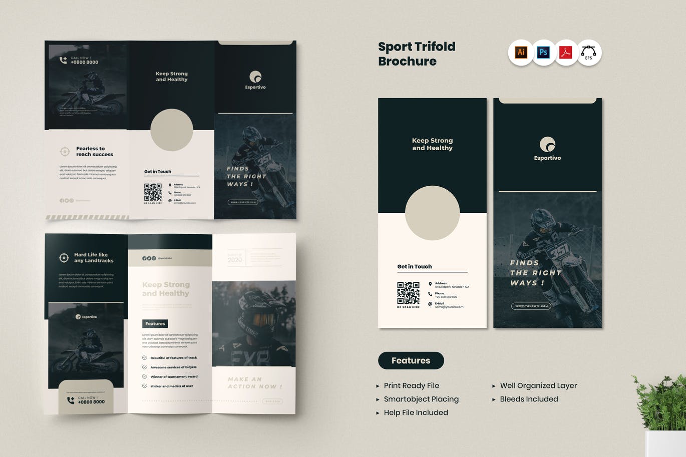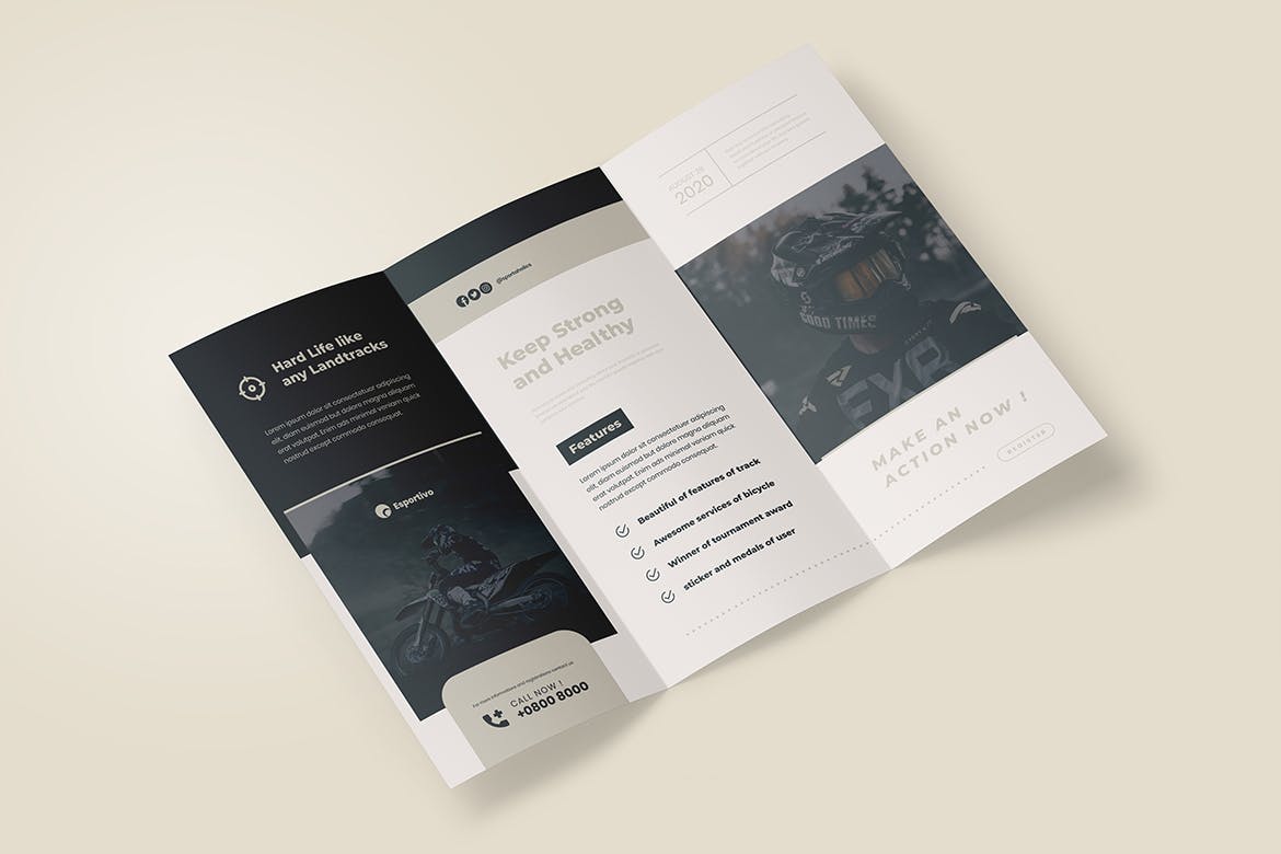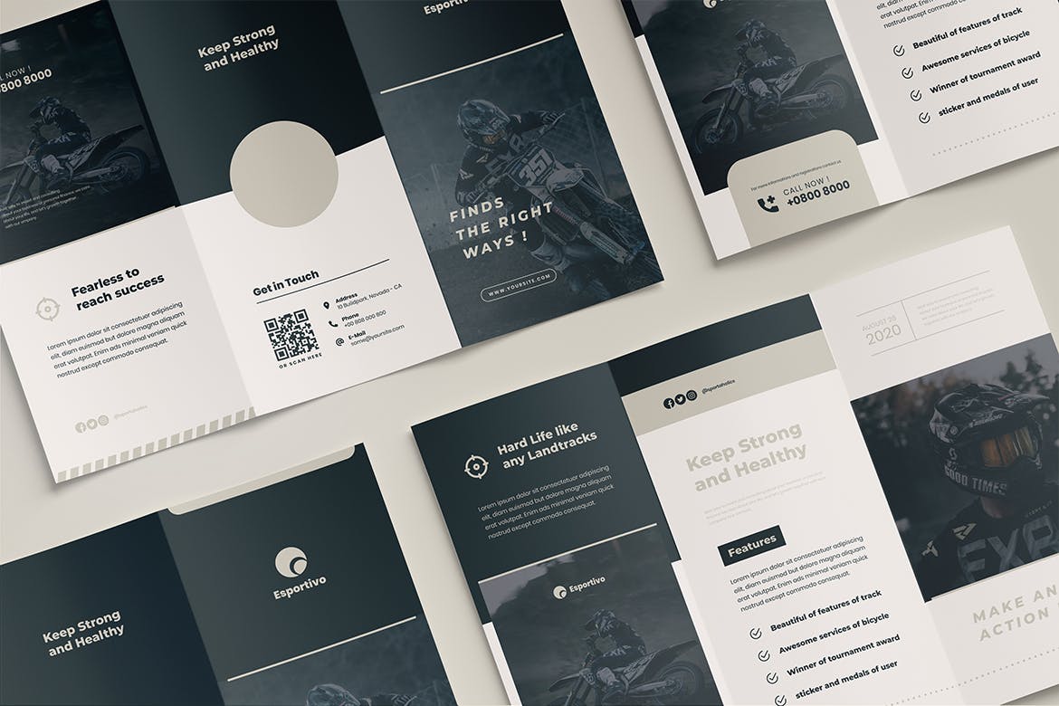 这次老不湿分享的是,时尚高端简约运动三折页设计模板-AI, EPS, PDF, PSD,优雅,现代,简单,简约和专业的设计。
