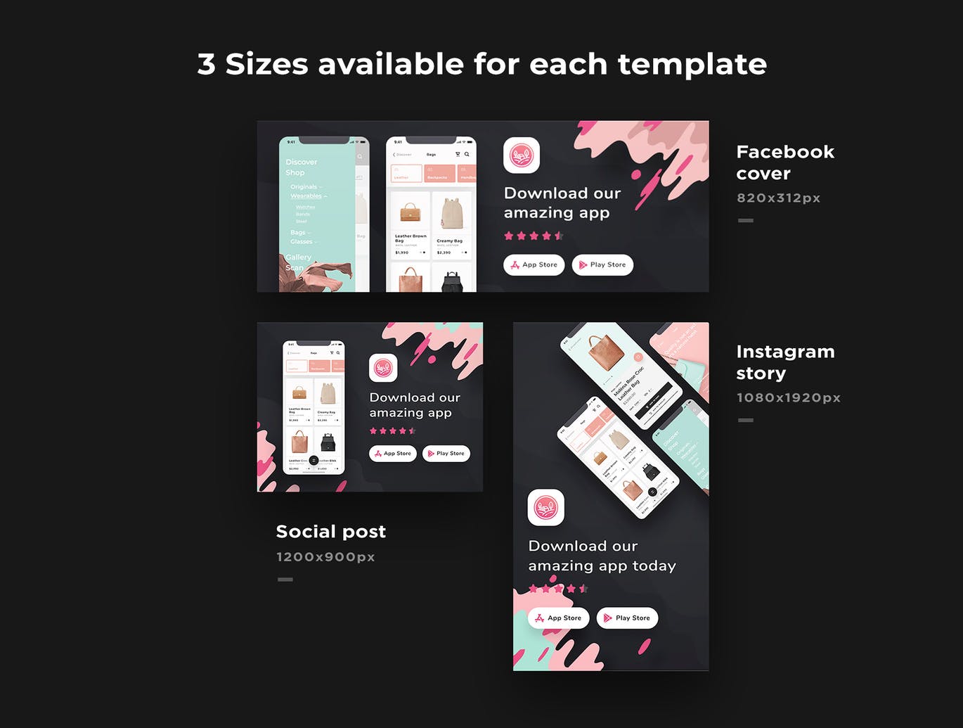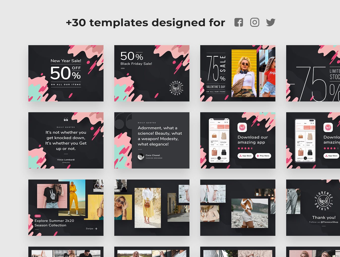 这次老不湿分享的是,时尚高端简约Instagram社交媒体banner海报设计模板集合-PSD、Sketch,这些模板专门为Instagram,Facebook和所有社交媒体平台设计。每个都易于编辑和自定义,您要做的就是替换图像和文本内容,使其成为您自己的!