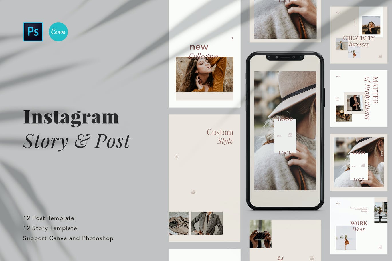 这次老不湿分享的是,优雅时尚高端清新多用途Instagram社交媒体banner海报设计模板,具有现代主题的极简主义美Instagram包模板。此模板非常适合企业,博客,生活方式品牌,创意,公司,公司,美容服务,时尚,精品店等。使用此模板,使您的Instagram促销看起来令人惊艳和引人注目。该模板包括12个独特且酷的Instagram帖子以及PSD和Canva格式的Story模板。