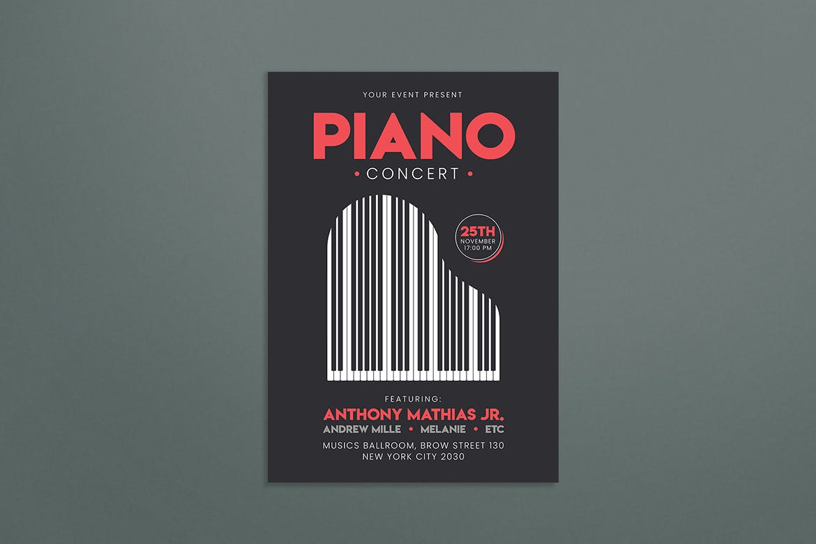 这次分享的是,钢琴培训或音乐会海报设计模板(AI,PSD),适用于钢琴演奏会或兴趣班相关的广告设计参考。