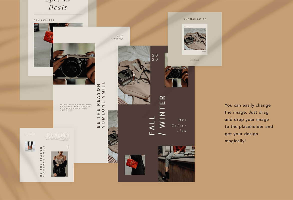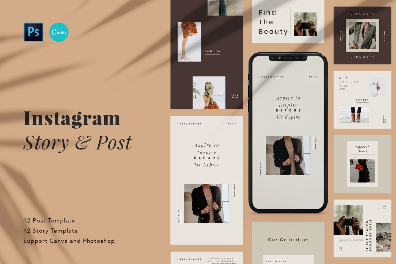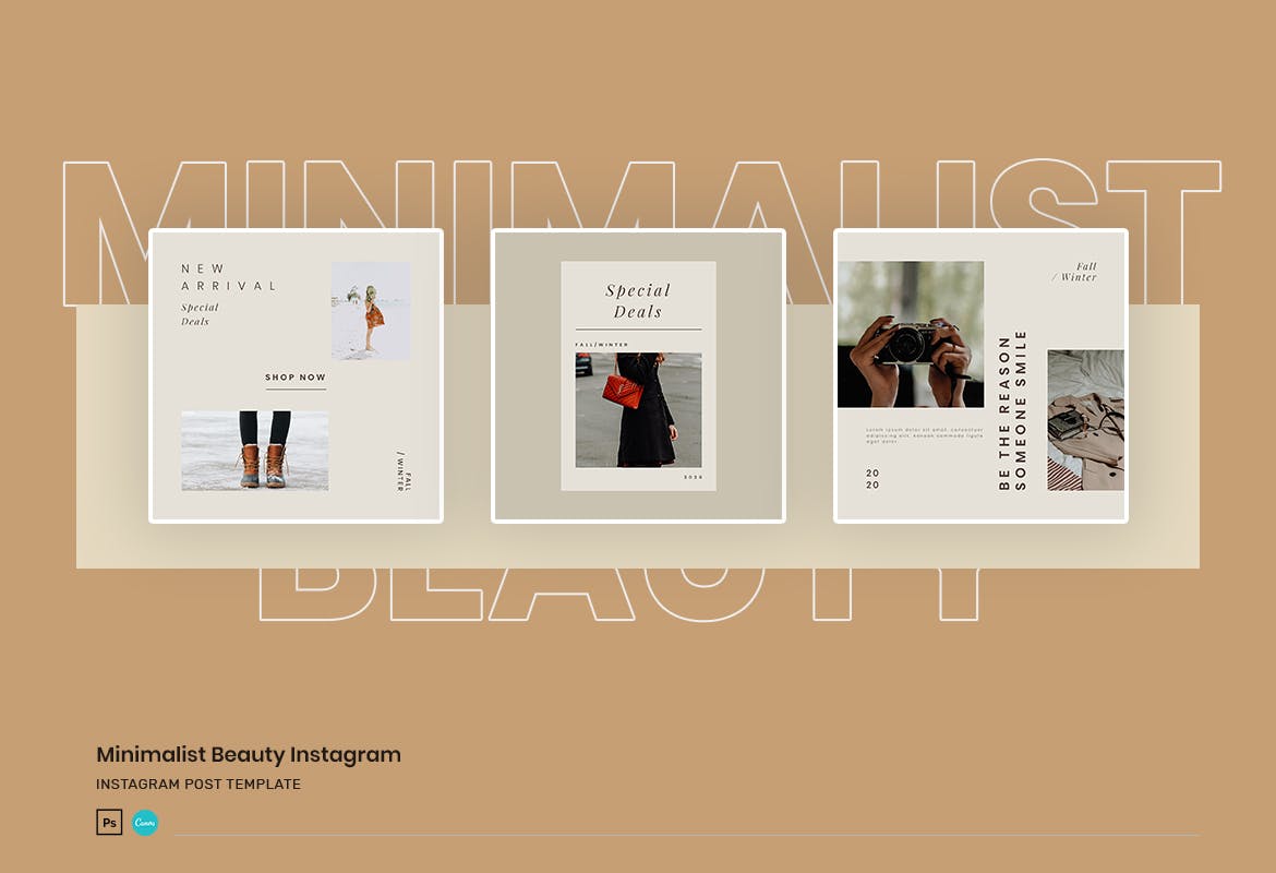这次老不湿分享的是,高端优雅极简主义美女Instagram社交媒体banner海报设计模板,此模板非常适合企业,博客,生活方式品牌,创意,美容服务,时尚,精品店等。使用此模板,使您的Instagram促销看起来令人惊艳和引人注目。该模板包括12个独特且酷的Instagram帖子以及PSD和Canva格式的Story模板。您可以使用Adobe Photoshop和Canva轻松地进行编辑和自定义。