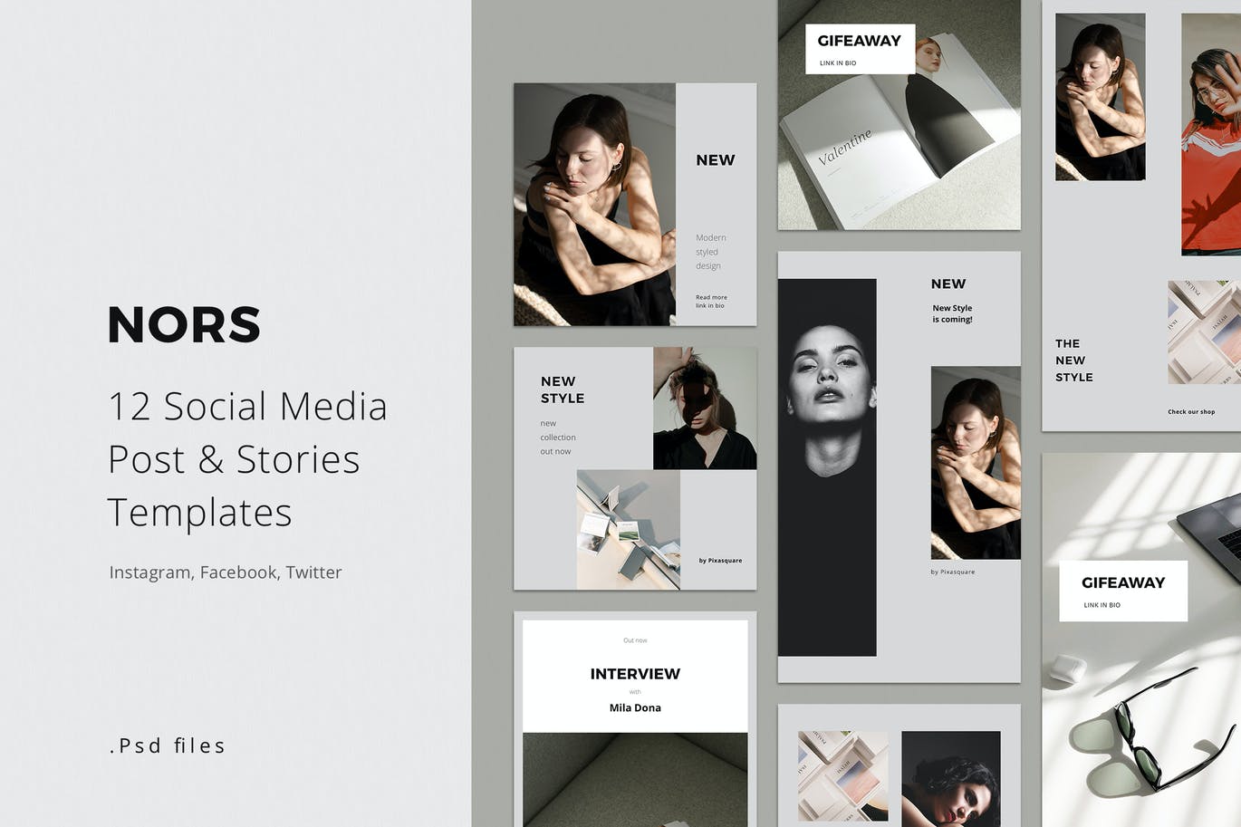 这次老不湿分享的是,简约清新时尚高端优雅instagram社交媒体banner海报设计模板集合,创意和时尚的社交媒体包包含12个设计。