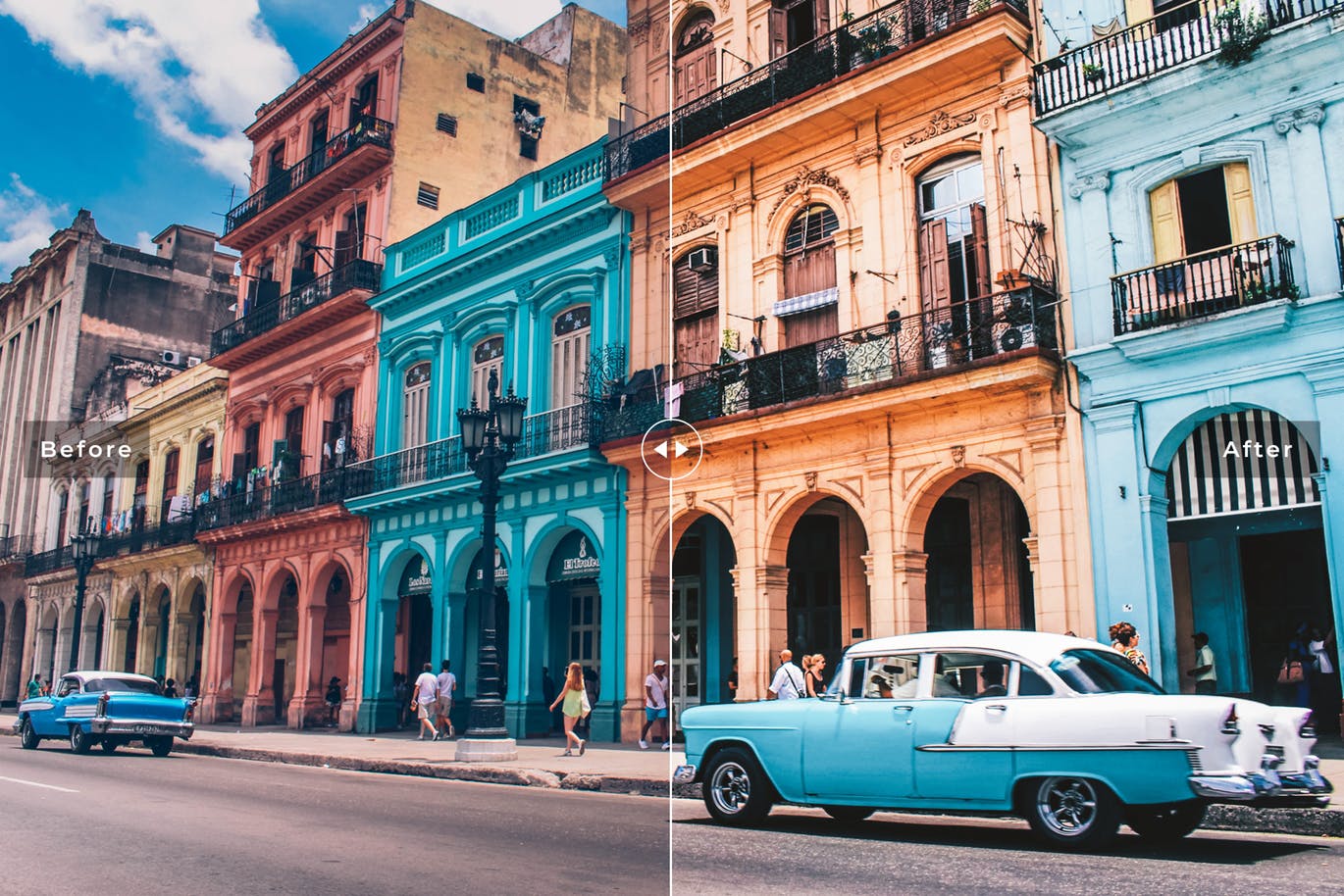 这次老不湿分享的是,时尚高端优雅的哈瓦那移动桌面Lightroom预设,将帮助您添加生动,丰富多彩的复古色调,并在几次点击内照亮您的照片!这个系列非常均衡,非常适合室内和室外摄影,婚纱摄影,城市,肖像,时尚,旅游摄影,订婚,风景,婚礼,建筑,食品摄影,生活方式以及介于两者之间的一切设置。