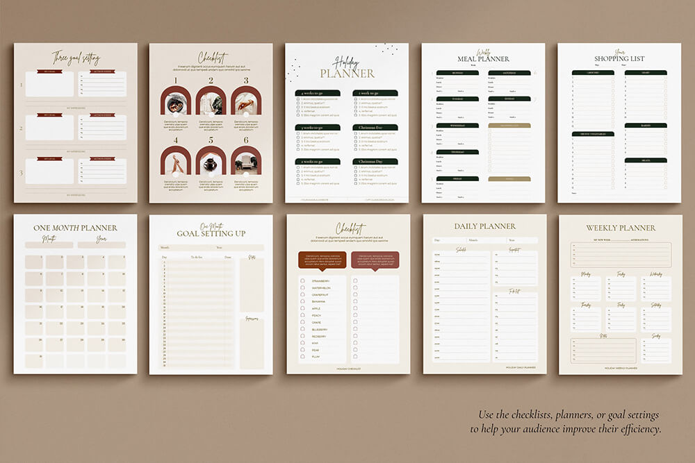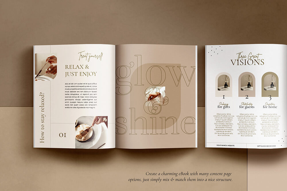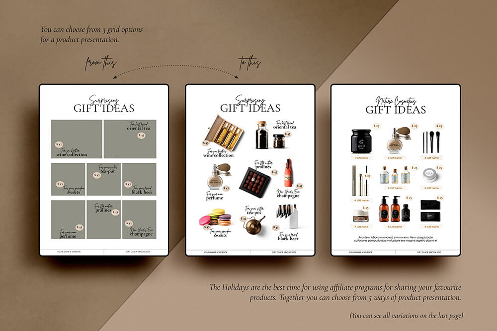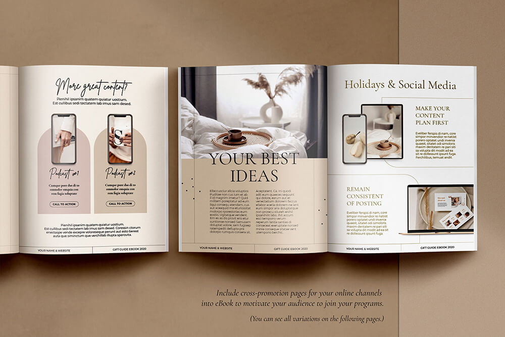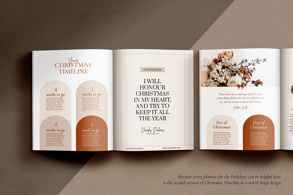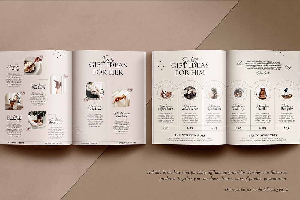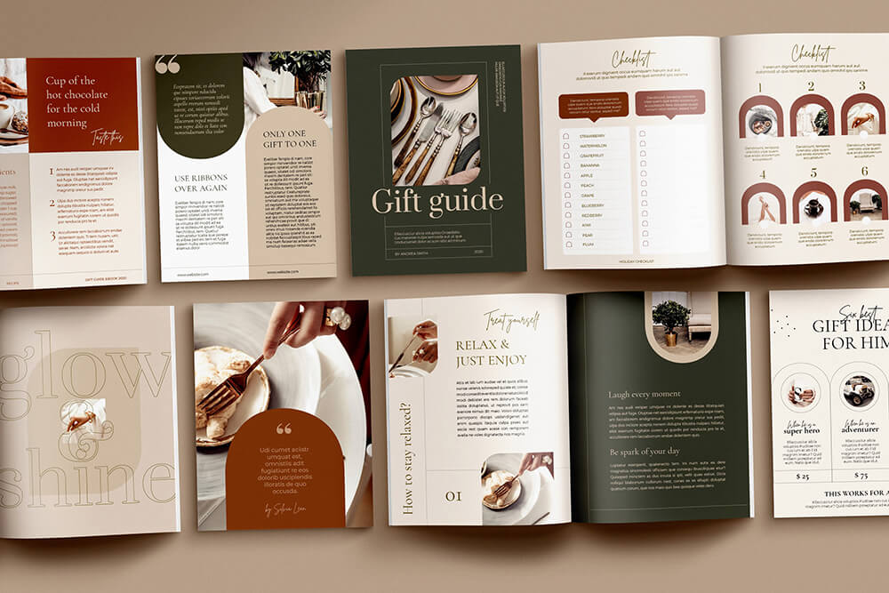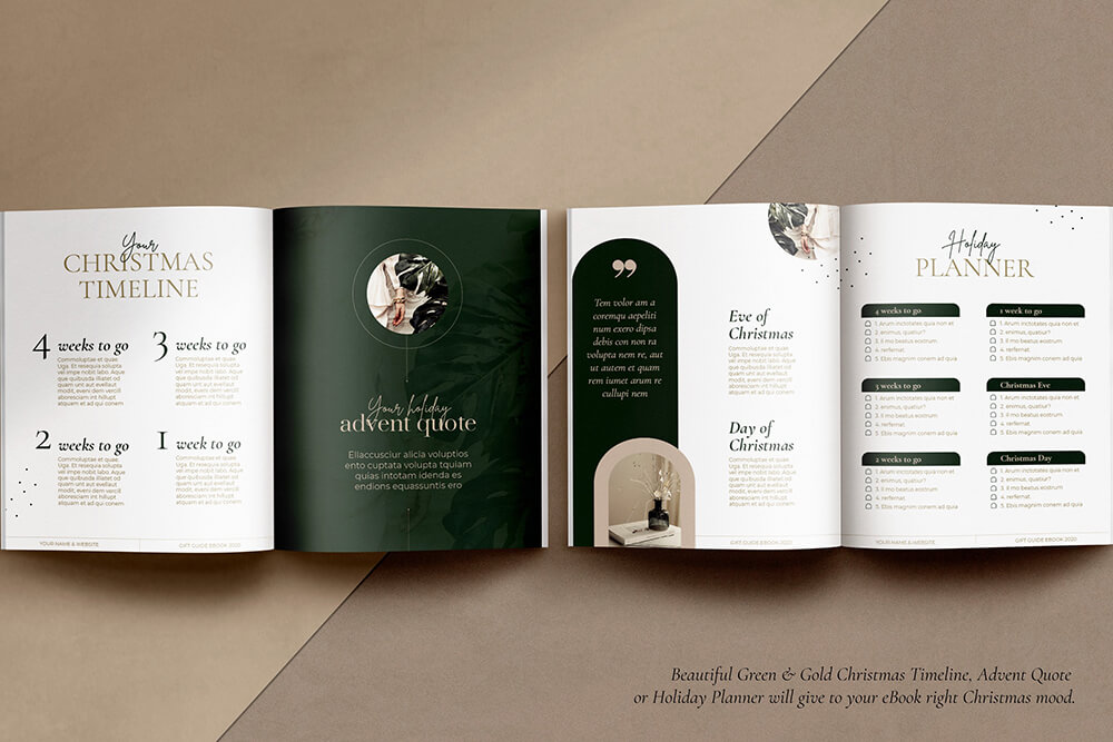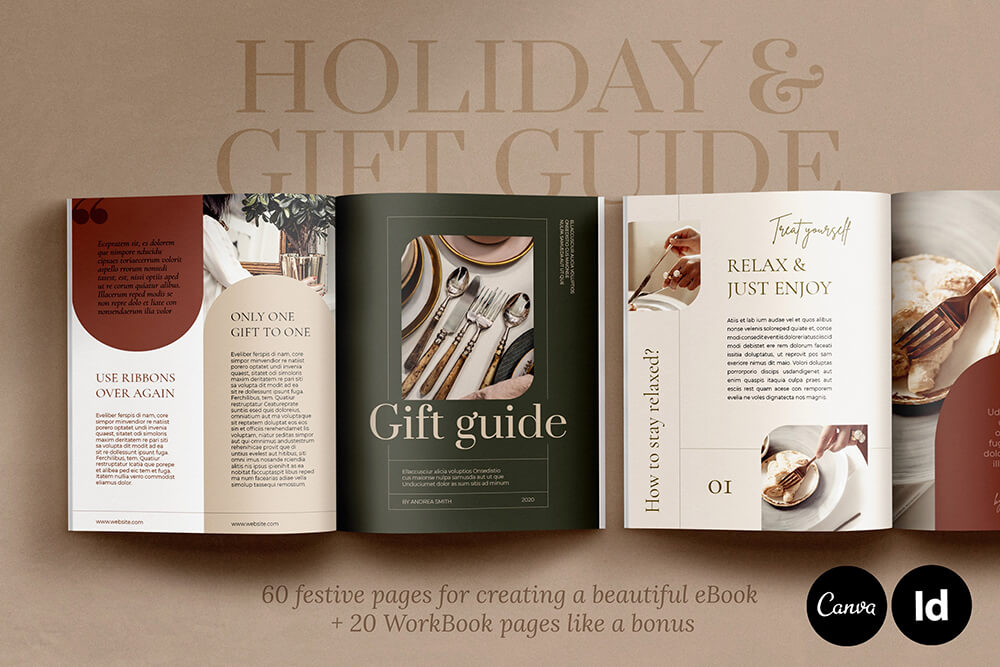 您的节日礼物指南电子书所需的一切现在都在这里。为CANVA 或 INDESIGN制作的80 多页完全可定制的页面,有美国信纸和 A4 尺寸。