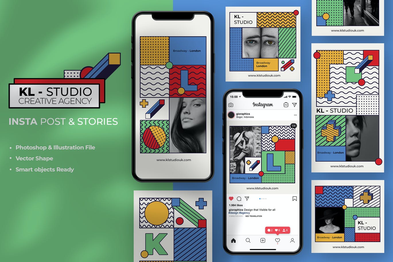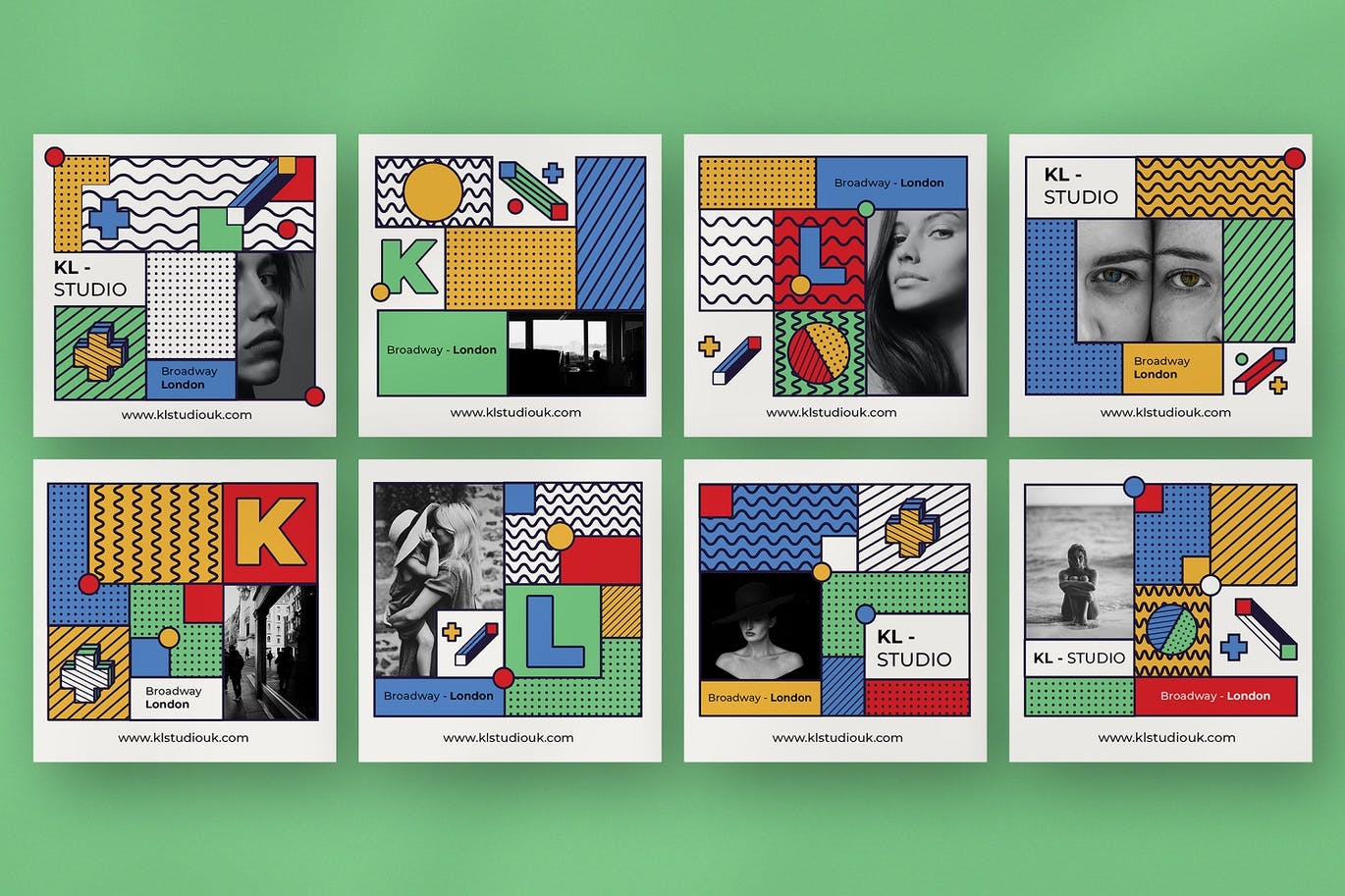这次老不湿分享的是,时尚高端波普艺术新孟菲斯风格Instagram社交媒体banner海报设计模板集合-AI,PSD,完美的模板,展示时装商店,产品,摄影,艺术品,食物,生活方式等。此项目由8个Design和可选大小Square或potrait大小组成,这些大小可完全编辑和自定义。