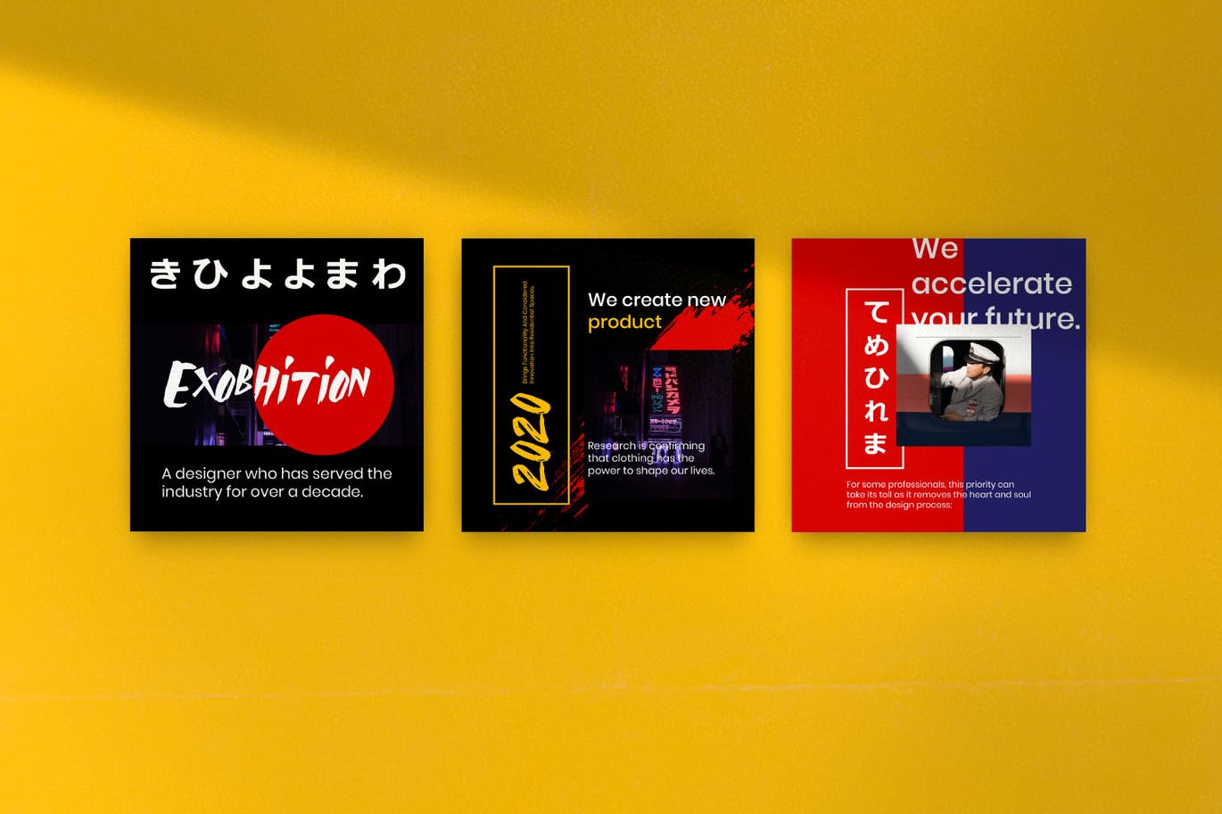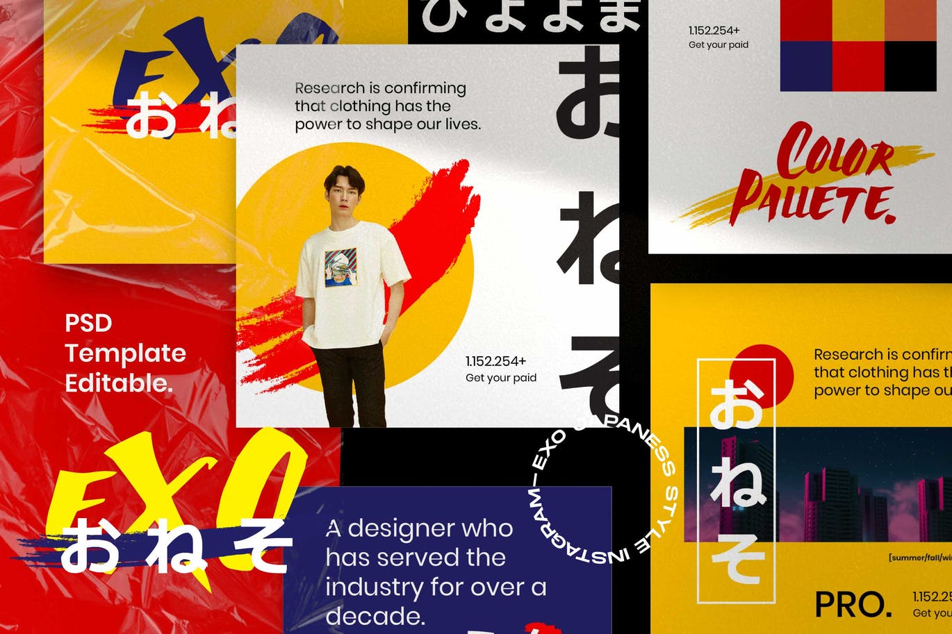 这次老不湿分享的是,时尚高端少见的日式EXO风格社交媒体banner海报设计模板-PSD,具有设计师设计和易于使用的品牌EXO社交媒体模板。此模板非常适合宣传您的产品,其中包括帖子和故事,享受和快乐的设计。