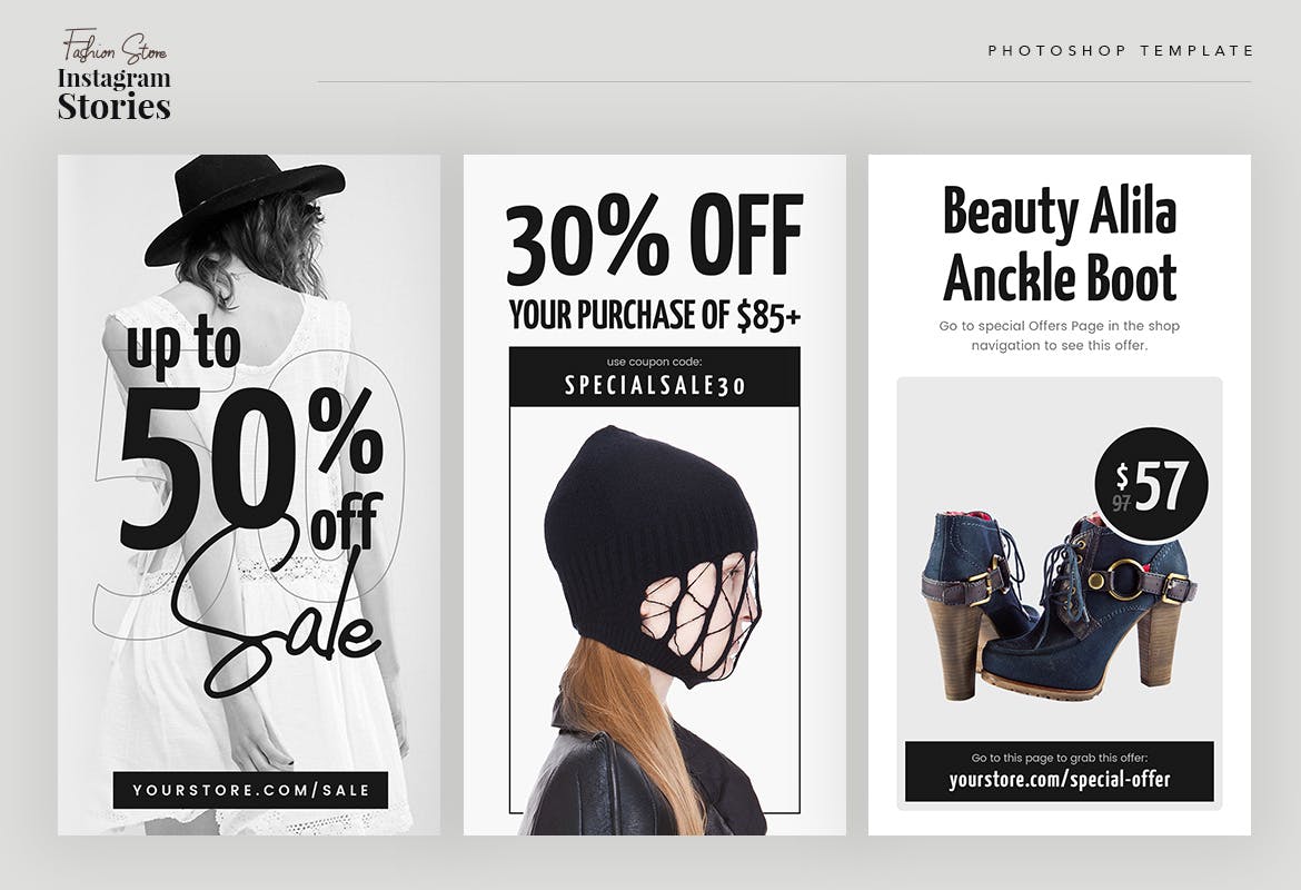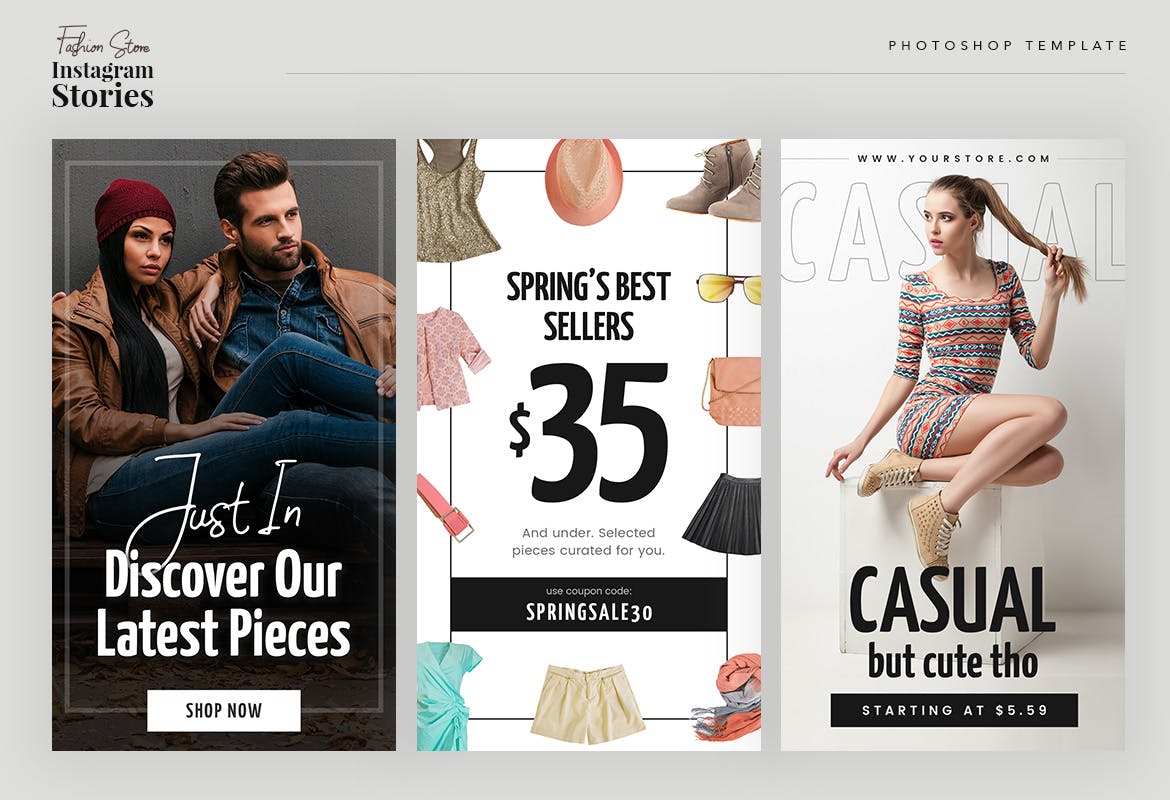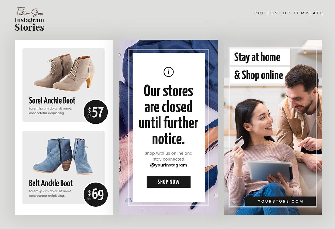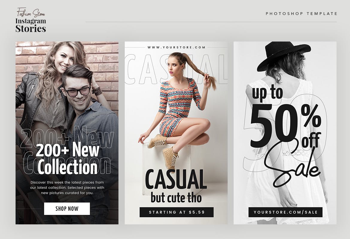 这次老不湿分享的是,时尚高端简约清新流行风格Instagram社交媒体banner海报设计模板集合-psd,具有时尚风格的时尚商店的现代Instagram故事。使用此模板,可以使您的时尚促销看起来令人惊艳和引人注目。该模板包括10个PSD格式的独特而酷的Instagram模板。您可以使用Adobe Photoshop轻松编辑和自定义。