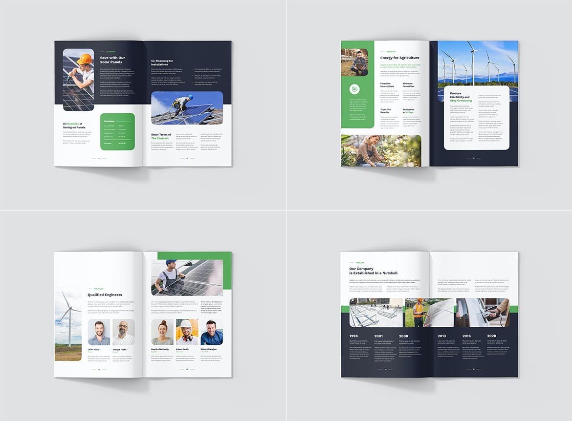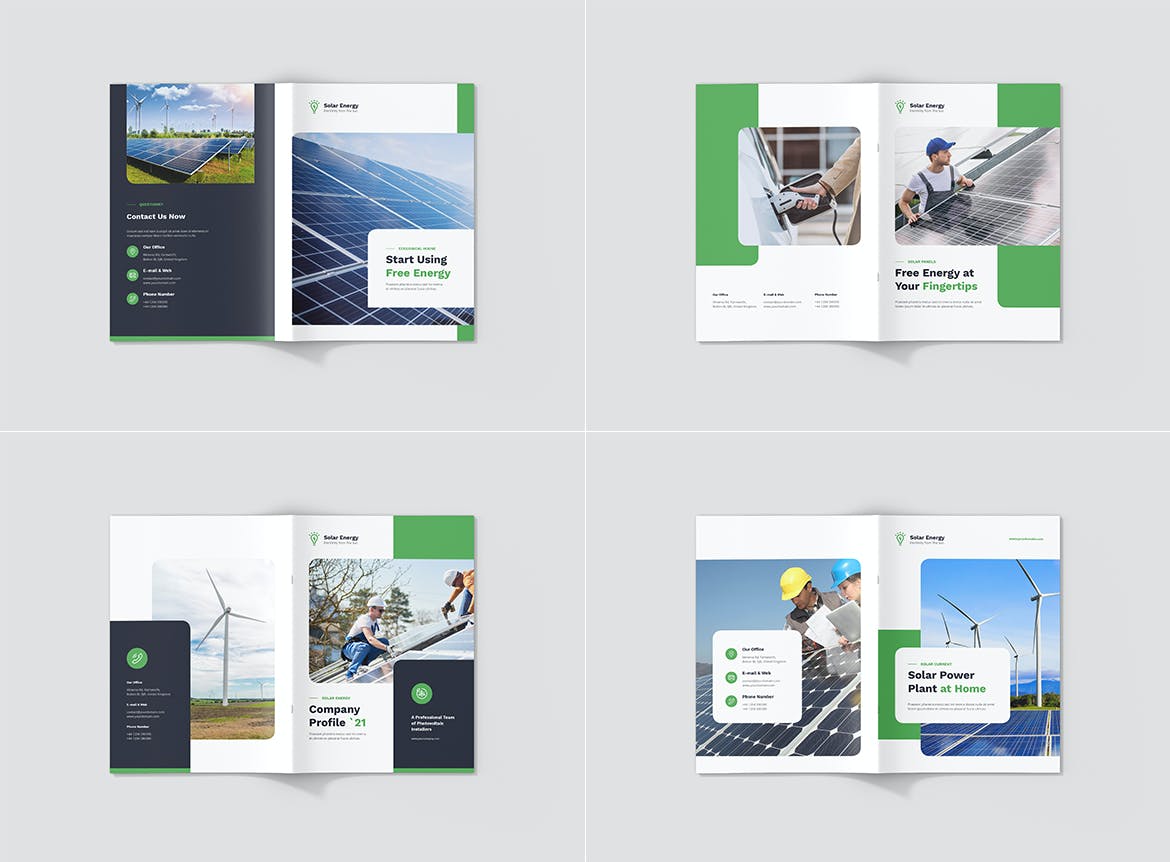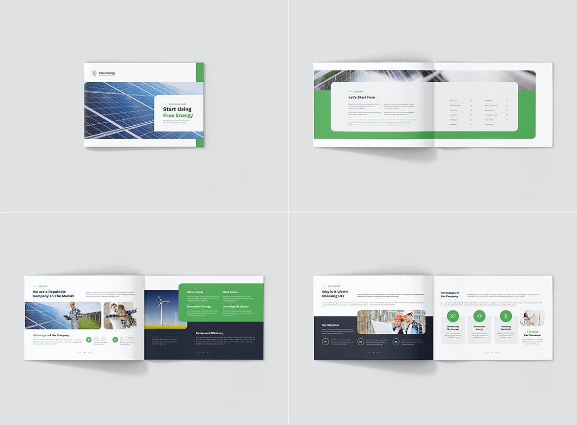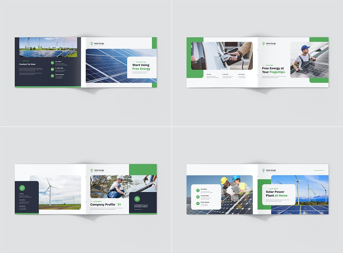 每个方向(纵向、横向、方形)都包括 4 种不同的正面和背面封面,为您创建独特的小册子提供更多可能性。