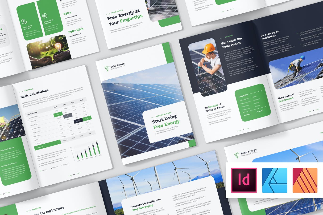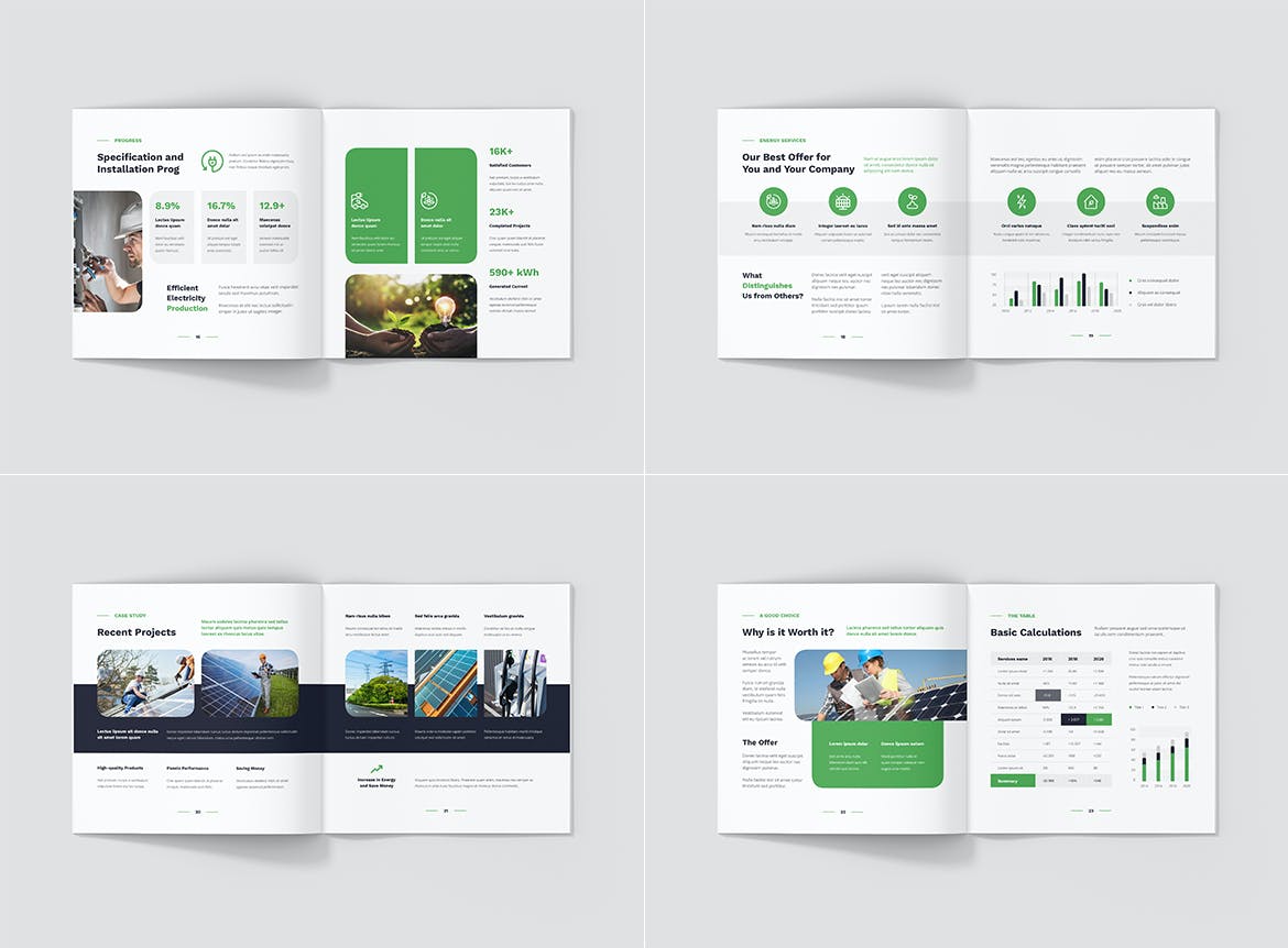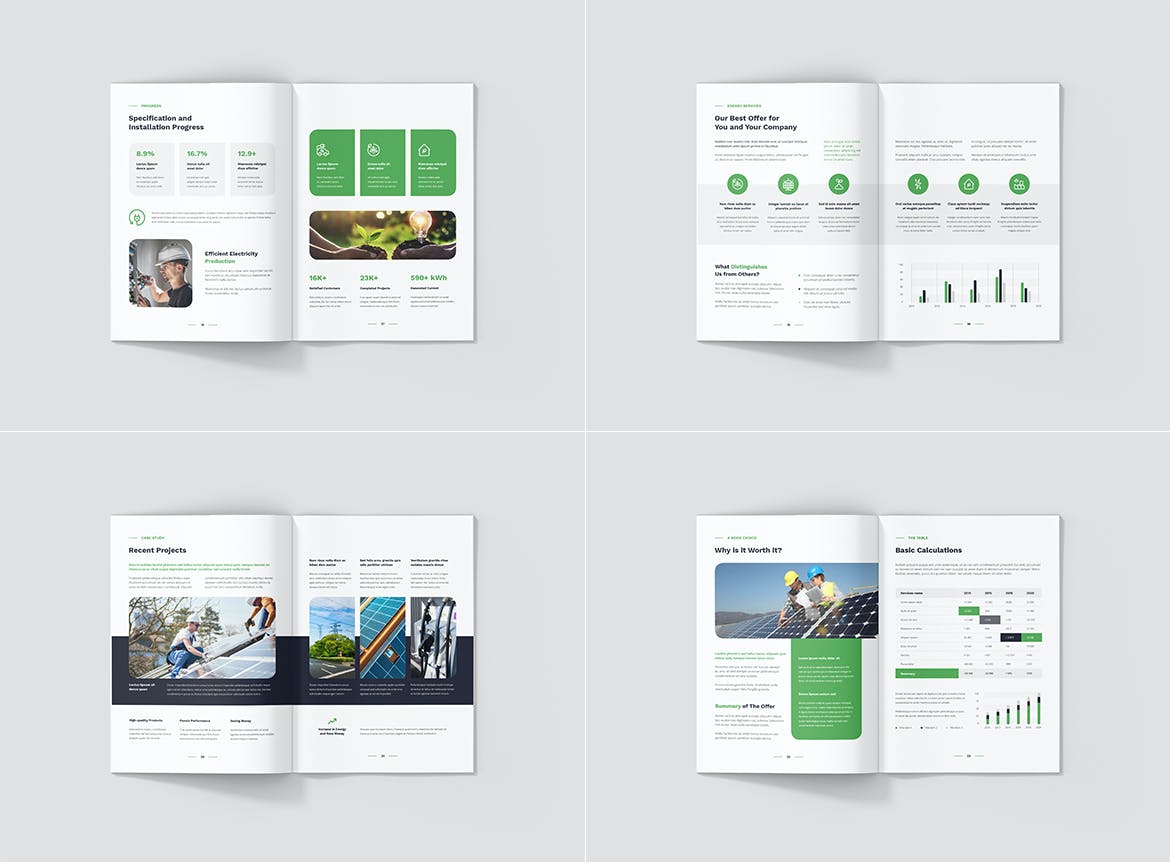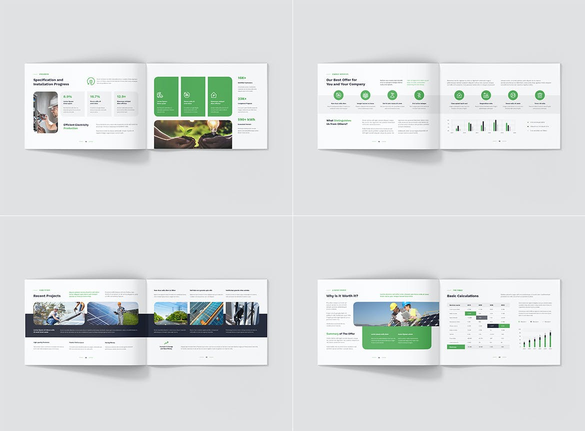 每个方向(纵向、横向、方形)都包括 4 种不同的正面和背面封面,为您创建独特的小册子提供更多可能性。