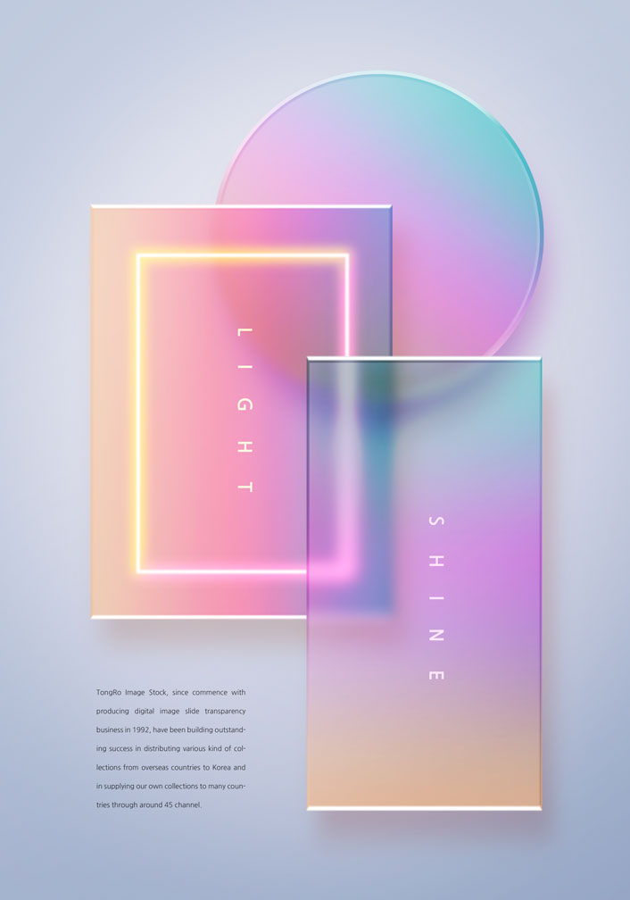 这次要分享的是彩虹色半透明毛玻璃海报设计素材,psd源文件,分层设计,适合各种抽象创意项目使用。