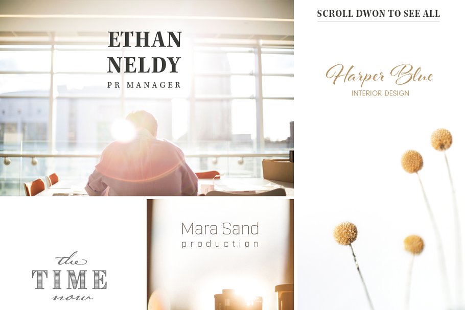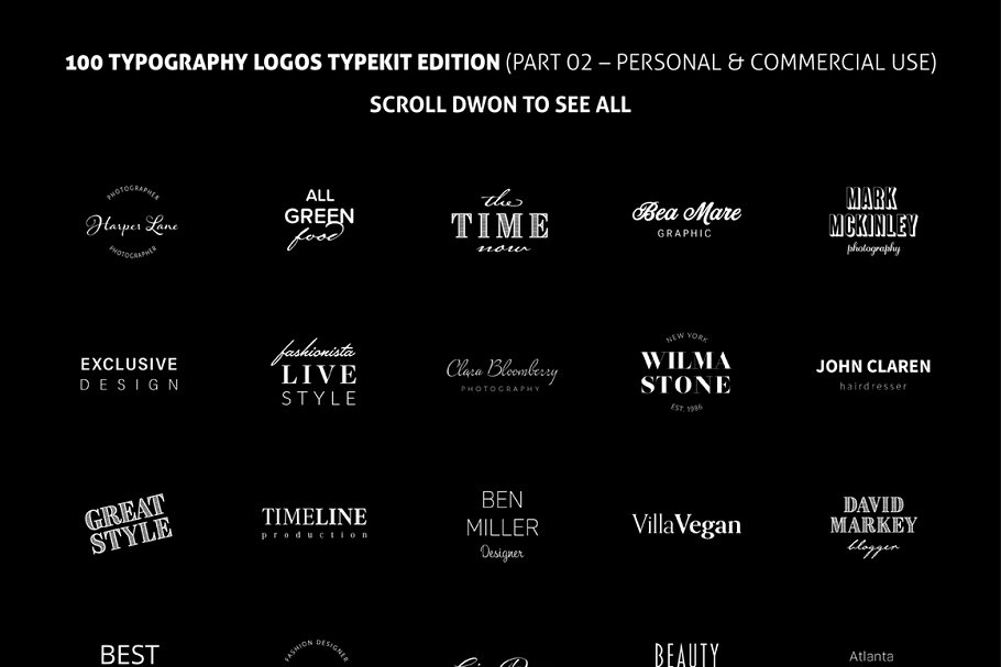 100种不同风格的排版标志模板, 简约、现代、浪漫、时尚的风格!不要通过搜索免费字体来浪费时间,不要通过搜索匹配的字体来浪费时间。使用此套装,完美地融入你的宣传册、网站、博客等商业项目中。