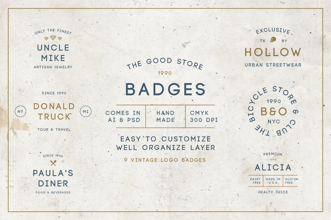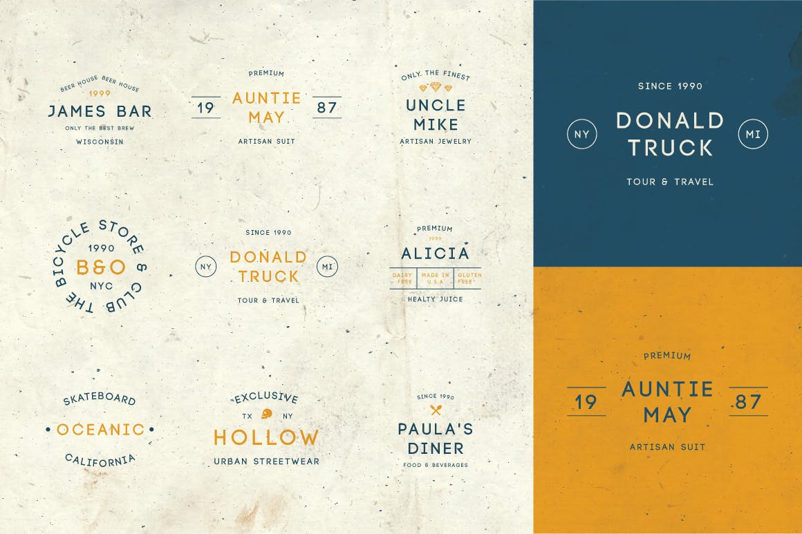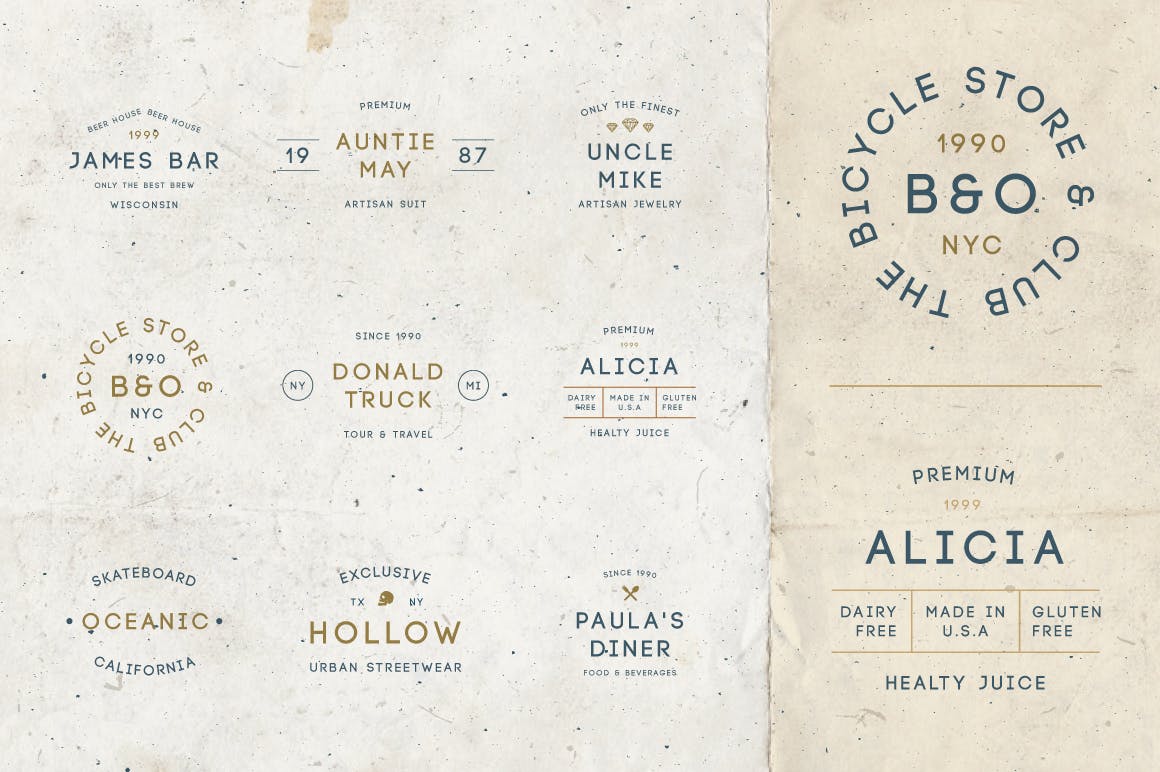 这次老不湿分享的是,时尚高端简约多用途的高品质复古风格的经典logo标志设计模板集合(AI,PSD),非常适合你即将推出的徽标/品牌,来自Ai&Psd。