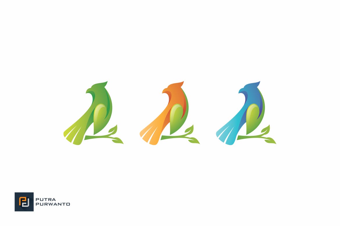 这次老不湿分享的是,时尚高端树叶子鸟logo标志设计模板,全彩色和灰度版本