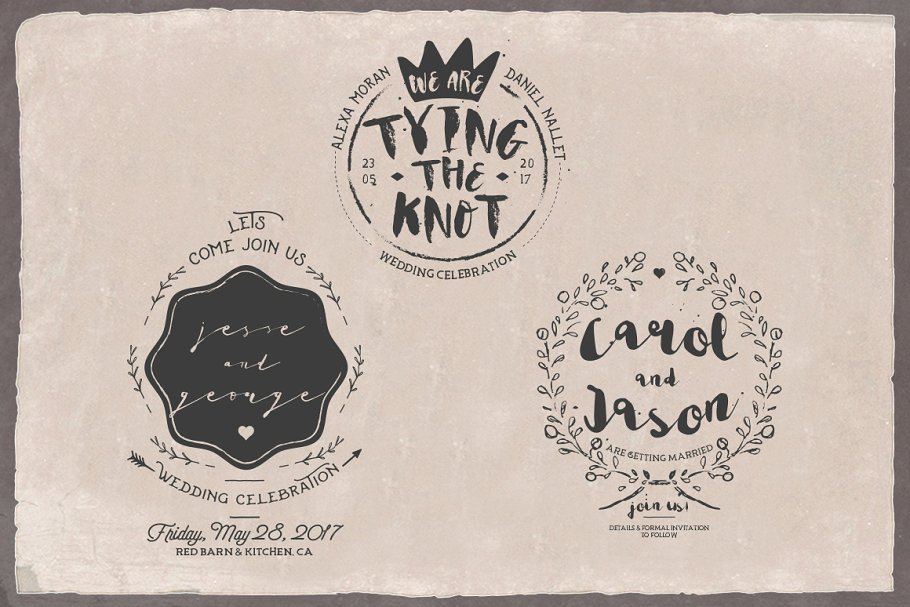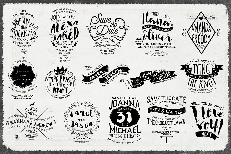 宣布你的结婚庆典,装饰你的派对,创建一个卡或任何设计项目,使用这一套复古婚礼徽章&贴纸。这个包里有15种不同的徽章,是为婚礼制作的,但是你可以在不到10分钟的时间里很容易地把它换成其他用途。