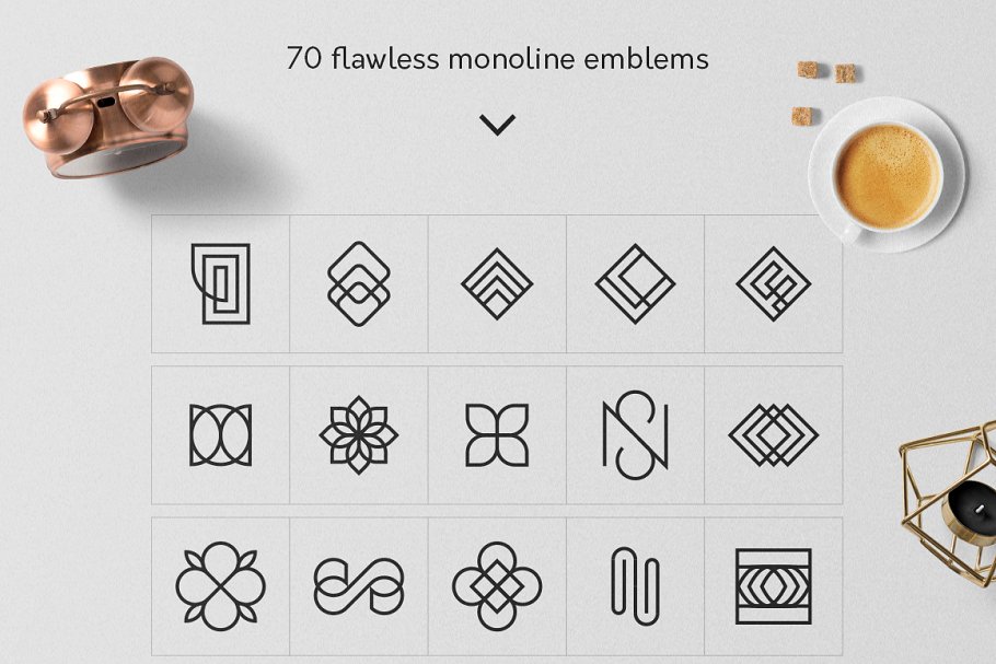 一个精心设计的集合,70个几何标志和18个标志模板准备使用。对你来说,在几分钟内定制你的新logo真的很简单:)。所有形状都是完美的几何形状,易于编辑(颜色、厚度甚至路径)。该软件包兼容Photoshop和Illustrator CS2+ &CC。