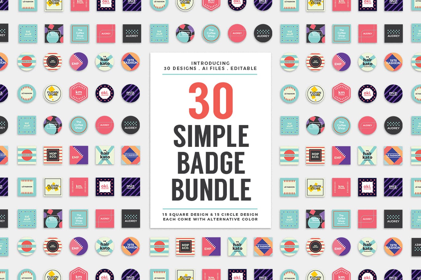 这个30个简单徽标徽章捆绑包非常易于使用,组织得很好并且重命名了图层,它完全可编辑且易于定制!