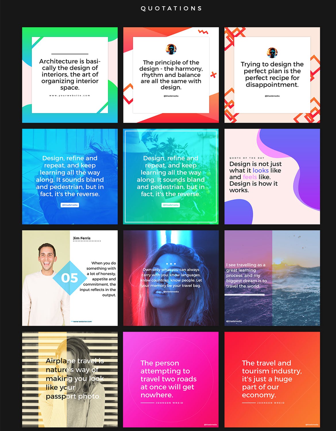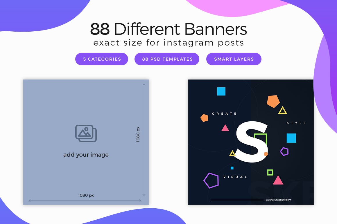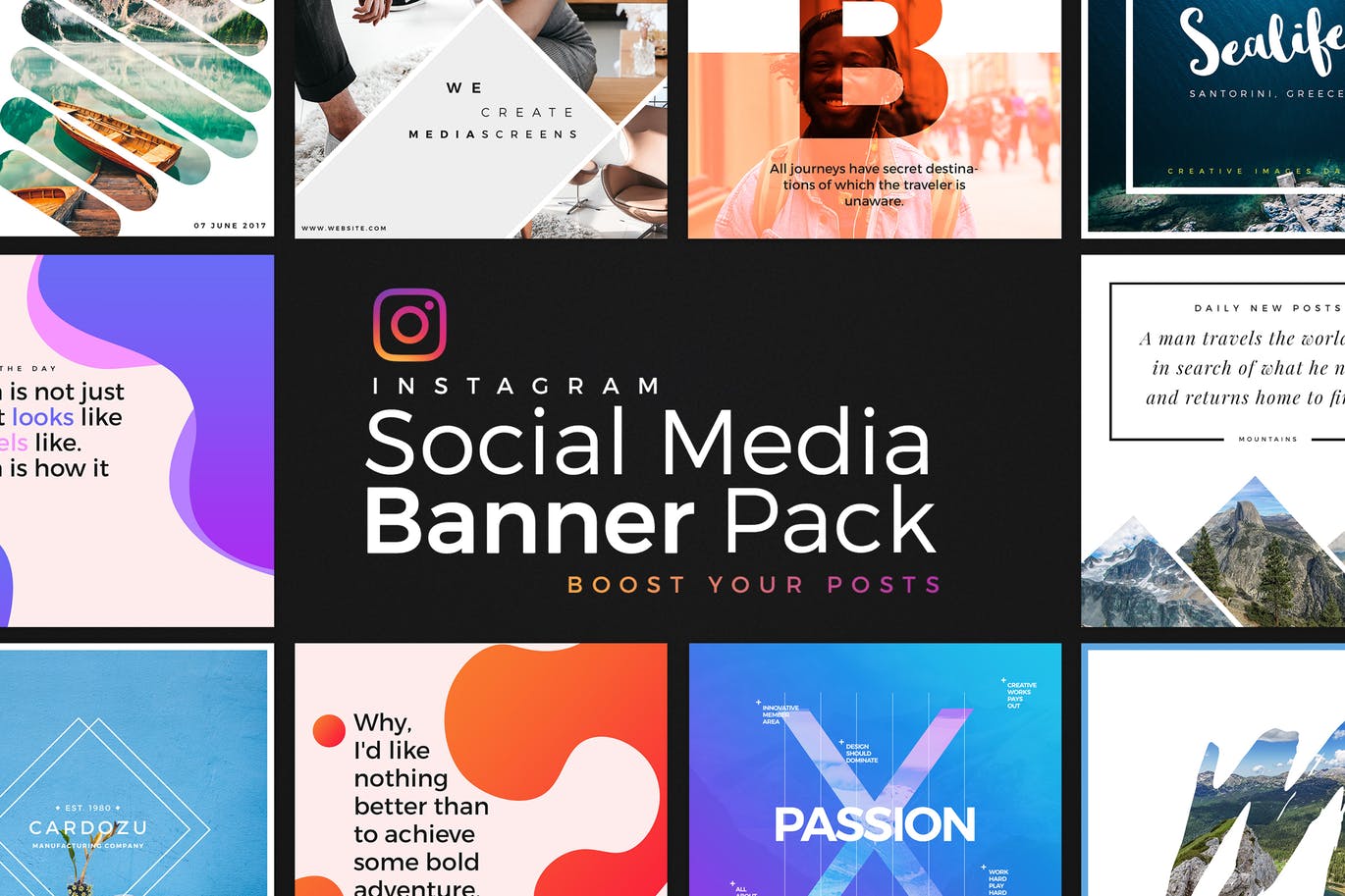 这次老不湿分享的是,时尚高端简约好用的高品质Instagram社交媒体banner海报设计模板集合(JPG/PSD),该产品包括30个为Instagram原生设计的模板。您还可以在Blog,Facebook,Instagram和任何其他社交网络上使用该设计。该软件包可与Adobe Phtoshop CS1或更高版本正常工作。它们每个都易于编辑和自定义,您要做的就是通过Smart Objects用艺术品替换图像。