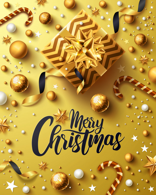 今天给大家带来这款圣诞节素材,带有圣诞圆球、星星、礼盒等装饰物,金色背景,可以用于圣诞节海报、贺卡、剪贴簿等设计上。