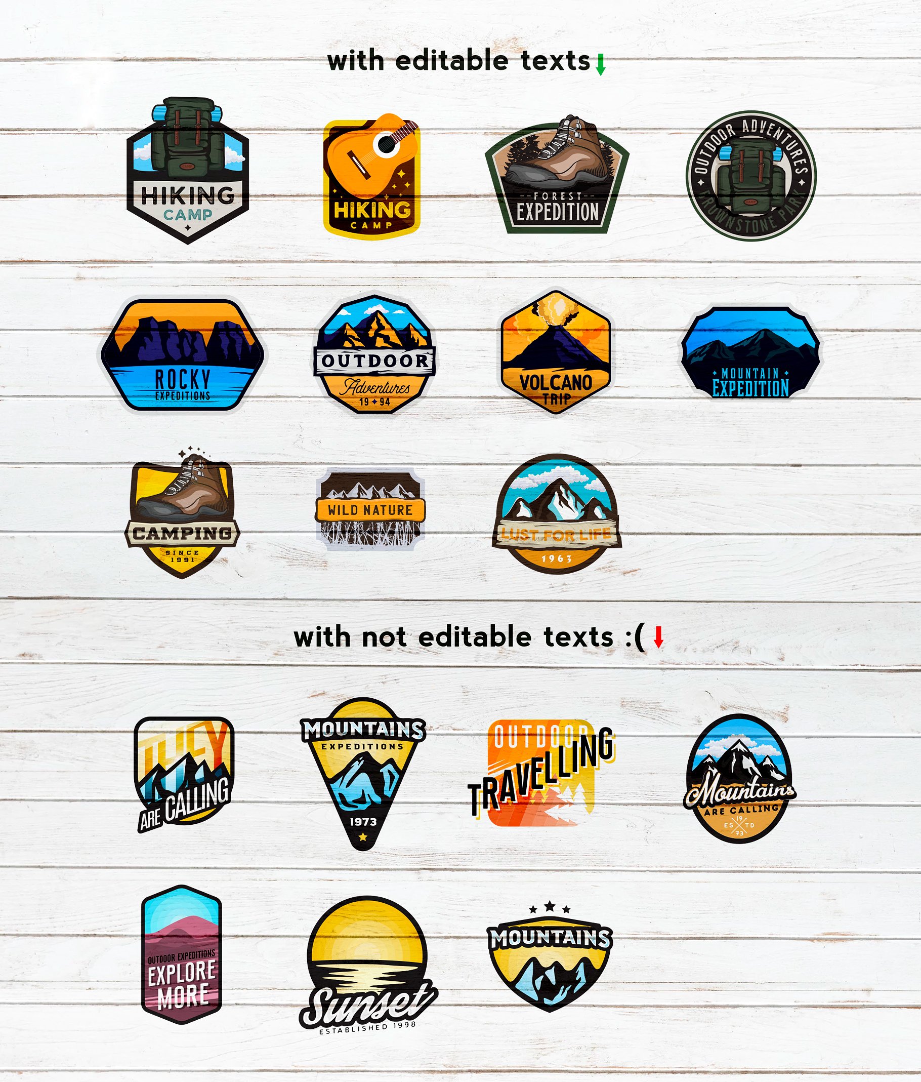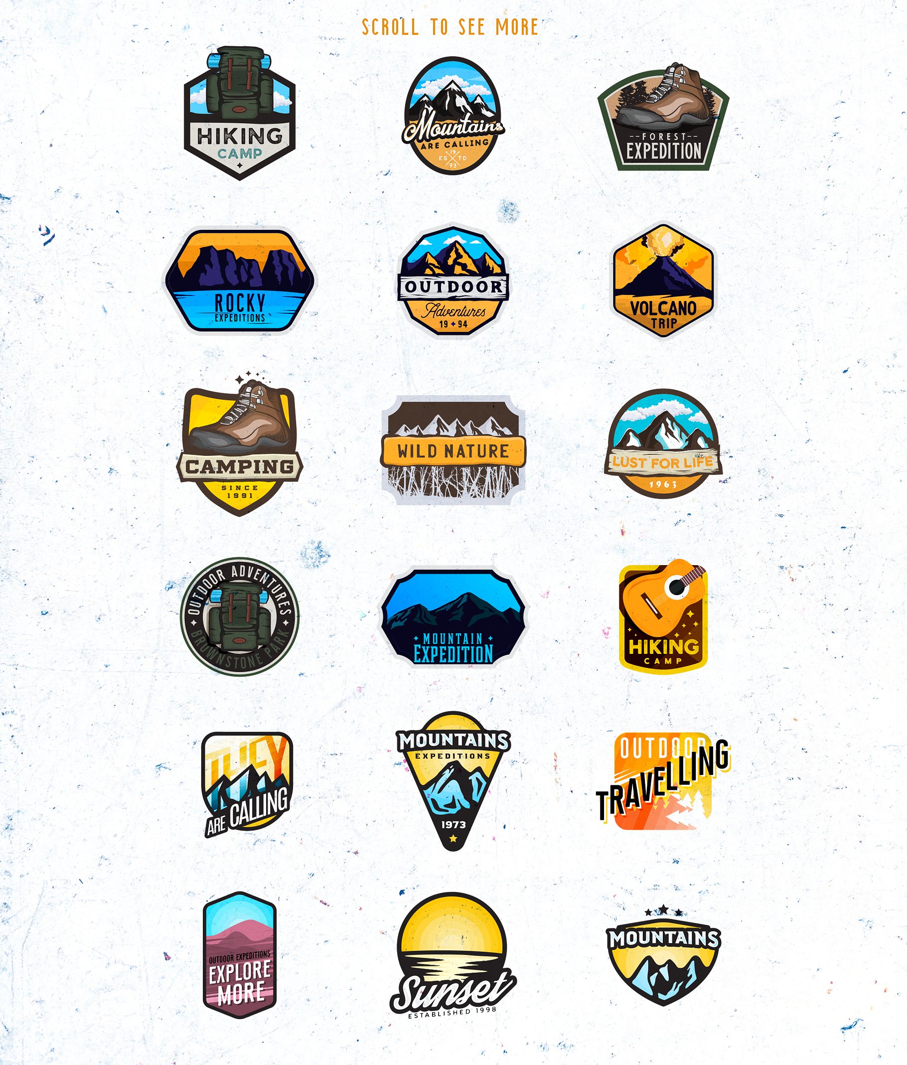 这是一套户外探险相关的矢量标志(徽章、标签、标牌),它们是用于品牌项目、服装设计、t恤印花、社交媒体、排版设计、标签、贺卡和更多您能想到的创意项目的完美设计资源。