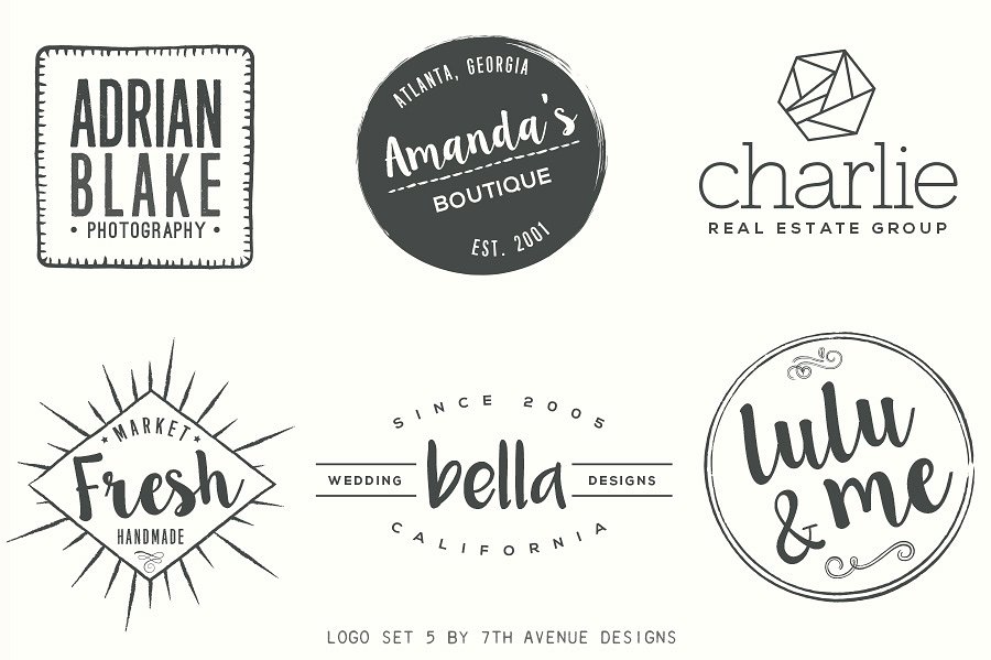 这组合集包含了6个标志模板,已保存为ai和psd文件。您将需要Photoshop Elements,Adobe Photoshop或Illustrator来编辑这些文件。