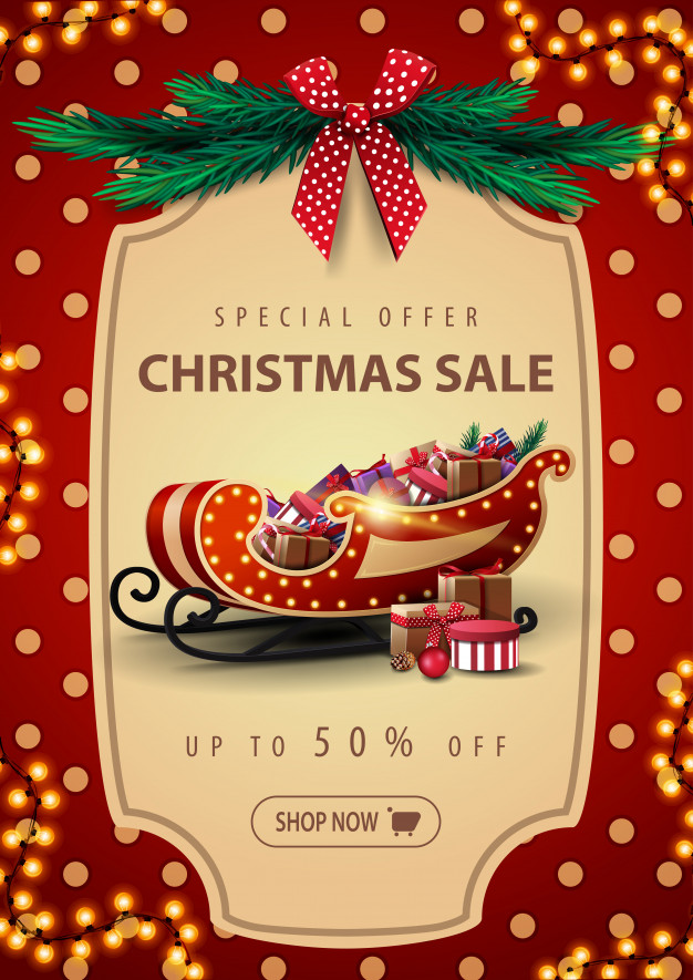 今天给大家带来垂直圣诞销售横幅,带有特别优惠、圣诞特卖等字样,带有花环、红色波尔卡点纹理、圣诞老人雪橇、礼物等装饰,红色背景,可以用于海报、网站、宣传单等。
