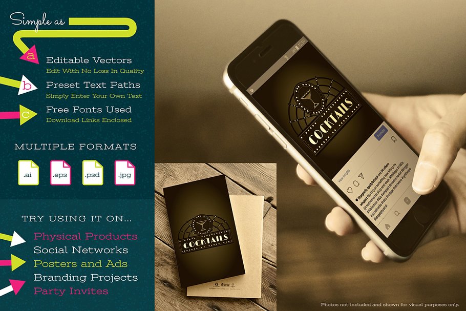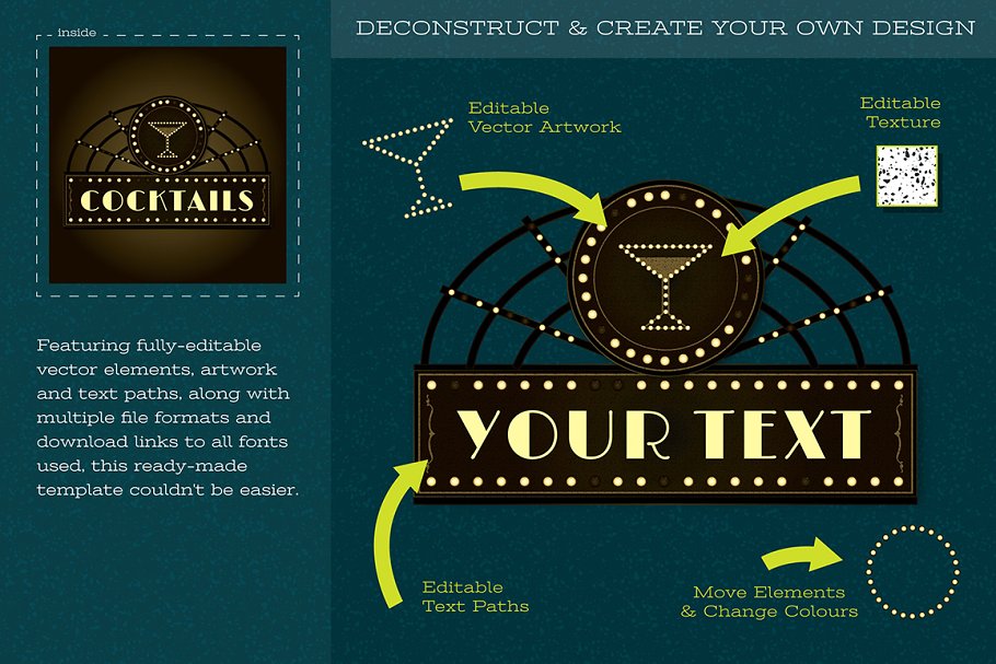 经典装饰logo标志 Art Deco Cocktail Logo for New Year