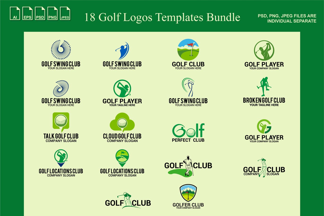 这次老不湿分享的是,时尚高端多用途的高尔夫运动logo标志设计模板集合,100%矢量和100%可编辑,可扩展而不会丢失细节。文件包括AI和EPS格式。所有字体均可免费用于个人和商业用途。“信息”文件中给出的字体名称和链接。