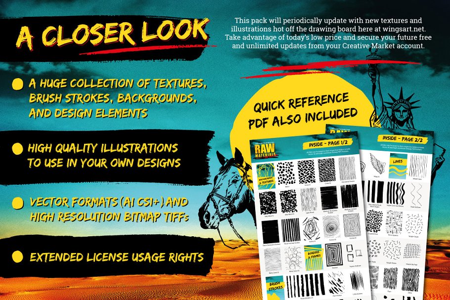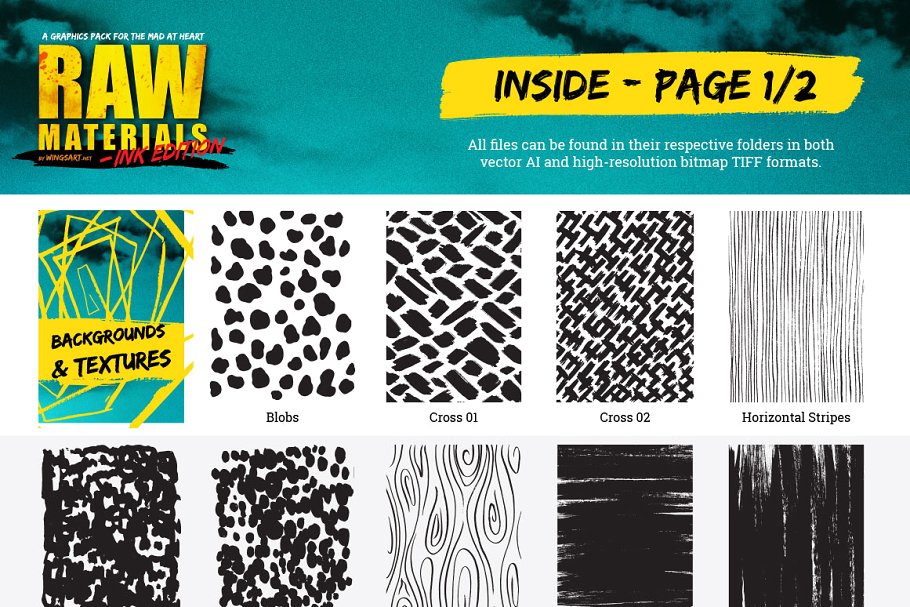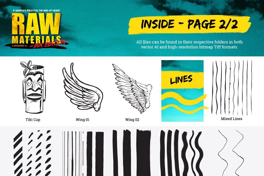 这组合集有超过110个独立元素,包括背景、纹理、笔刷、手绘图形、专业质量的插图等。已保存为矢量和高分辨率位图Tiff格式(Adobe Illustrator CS1及以上为矢量文件推荐)