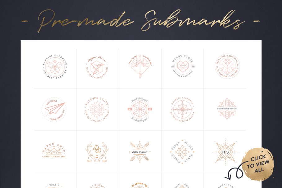 与此美丽、精心制作的徽标、图标和Submark造物主包创建无限的设计。与建立您自己的元素或准备好设计的徽标,图标和子标记供您选择。所有的设计都是完全可编辑的。
