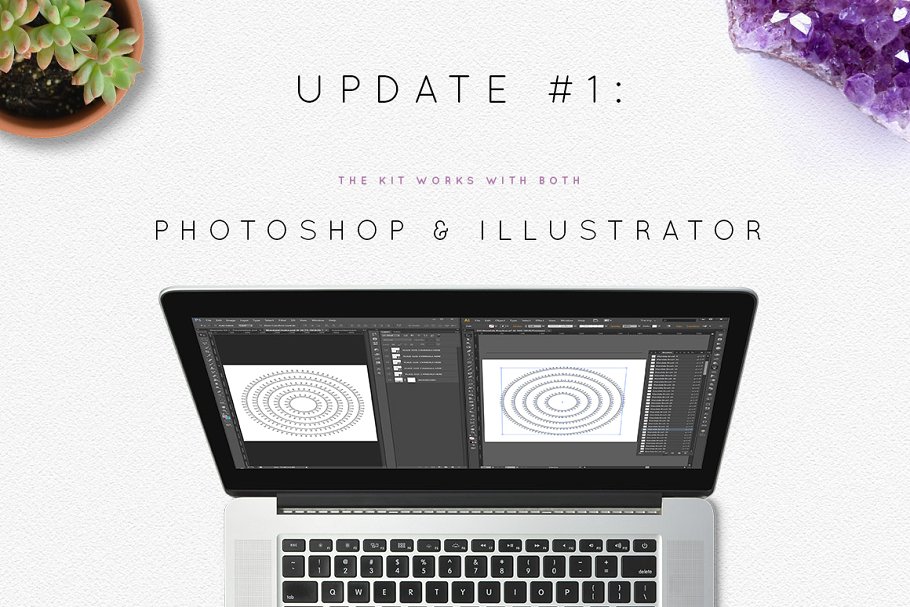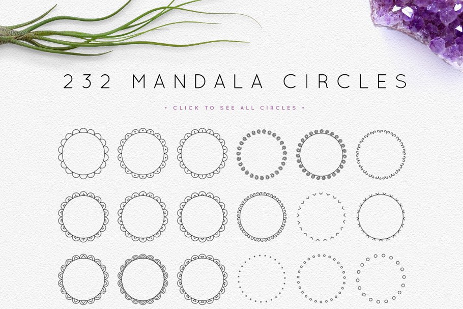 这个曼荼罗徽标是一个矢量工具包,包含矢量画笔,准备使用徽标和水彩圆圈。通过在圆心的圆上应用Illustrator笔刷创建一个曼荼罗。这些组合几乎是无限的。