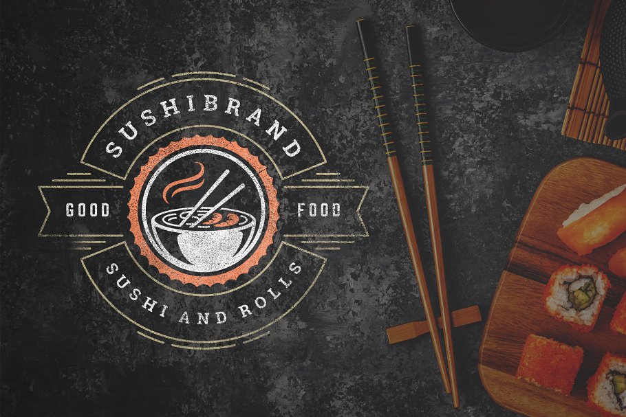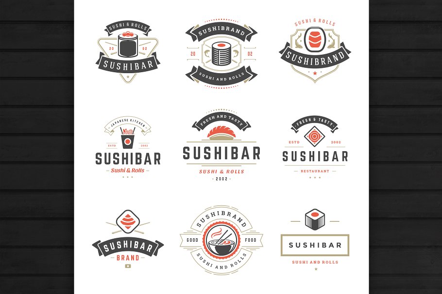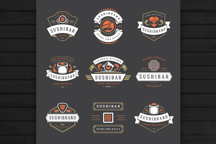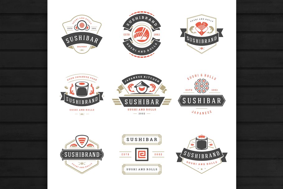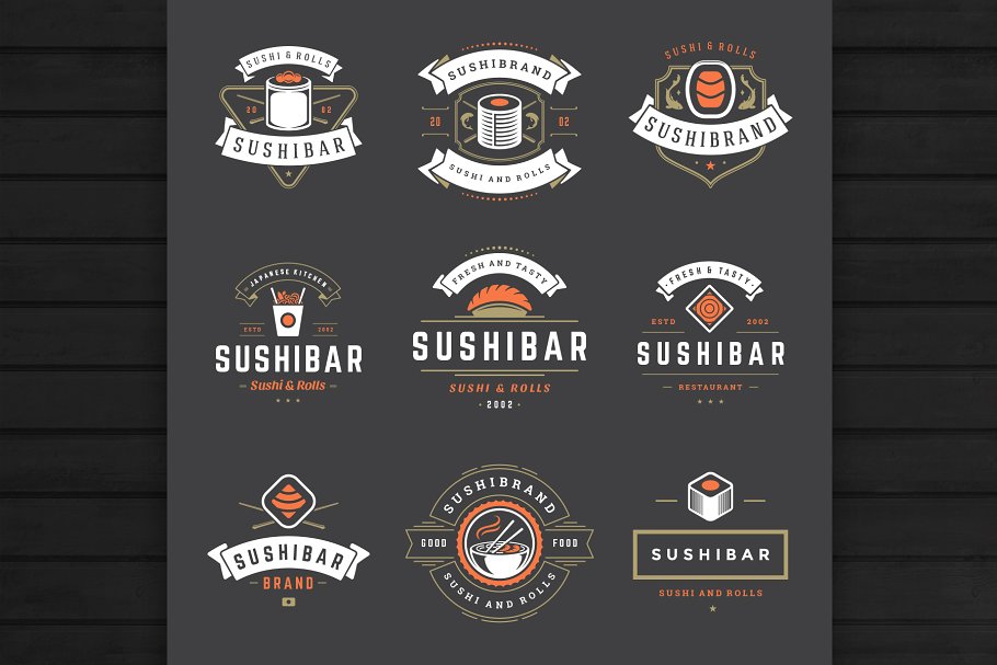 18个寿司店的标志和徽章,复古风格的设计Vol.05