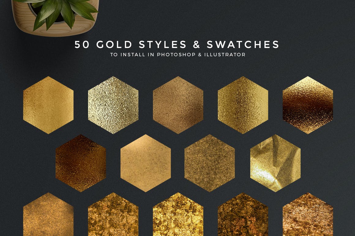 - 50个用于Illustrator的金色样本(无缝模式)