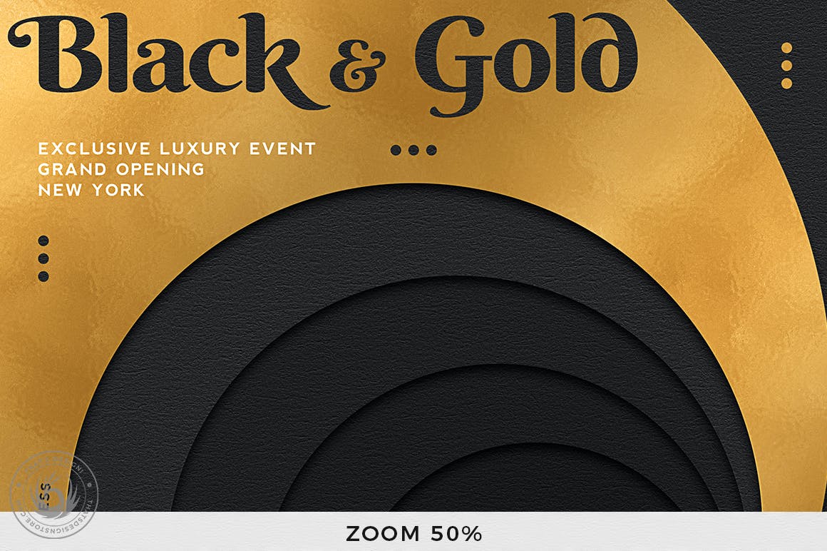 这次老不湿分享的是,时尚高端金色黑金宣传单DM海报设计模板,1个Photoshop PSD文件,1个帮助文件。